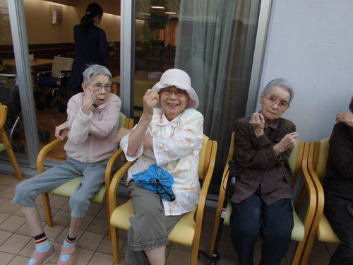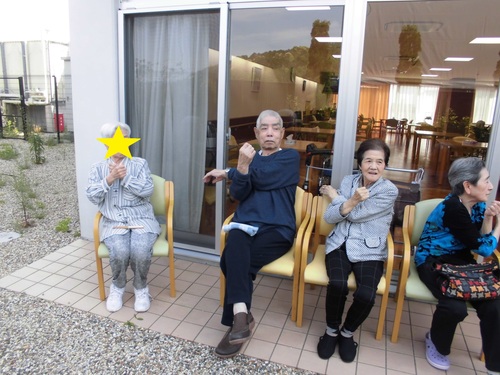 本日お届けするのはあったかい小春日和での機能訓練のひとコマです。