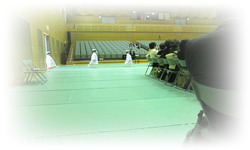 なので写真のようにシートに乗って頂き避難を想定して訓練しました!