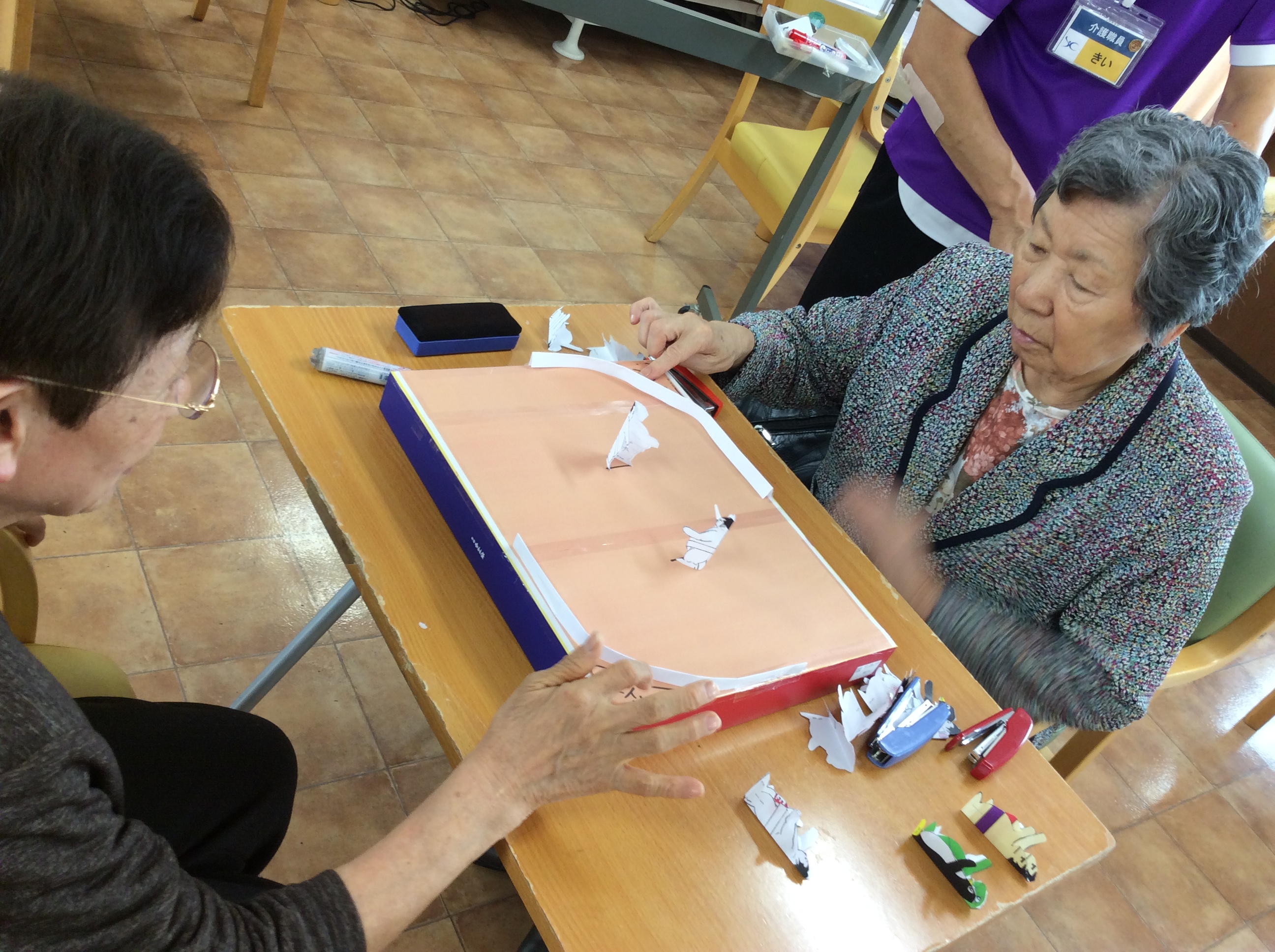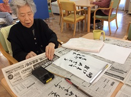 今日は、来月の壁紙の製作レクリエーションに様子をお届けします♪