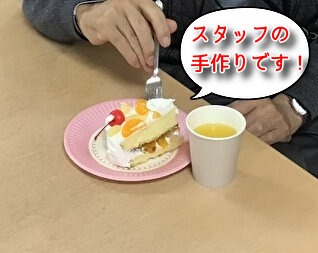楽しいクリスマス会で食べて頂いたケーキですが、なんと職員がデコレーションをさせて頂きました!