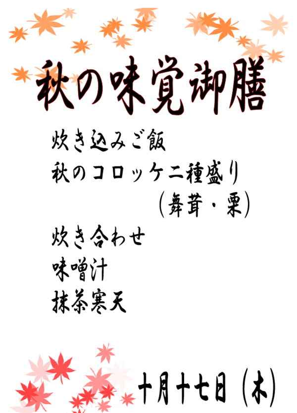 今月から給食会社変更に伴い日替わりで手作りおやつを召し上がっていただくこととなりました。
