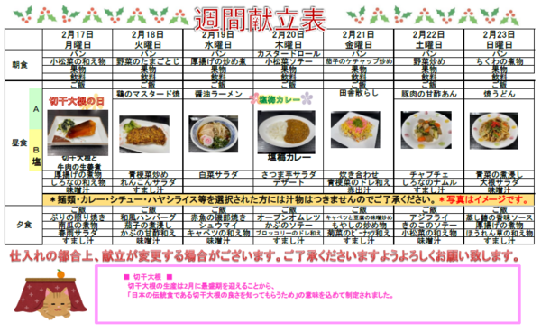 今月もごちそうメニューに加え季節にちなんだイベントメニューもご用意しています。