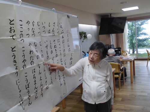 実施場所もお部屋であったり、食堂、施設駐車場と色んな場所を利用しながら皆さんにイキイキと取り組んでいただいています。