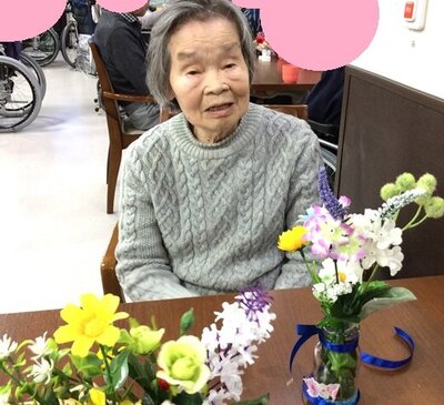 出来上がりのお花を見て「きれいねぇ」と感心してくださっていました♡