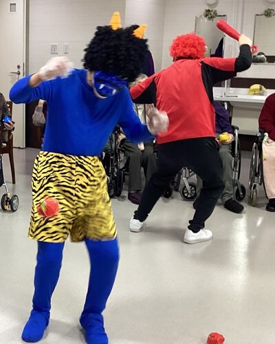 ご入居者の皆様も、一緒に体をゆすったり手をふって踊ったりと