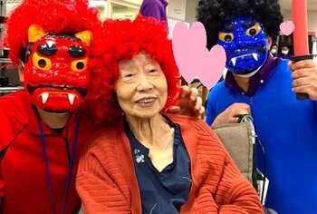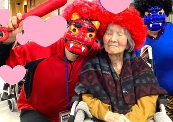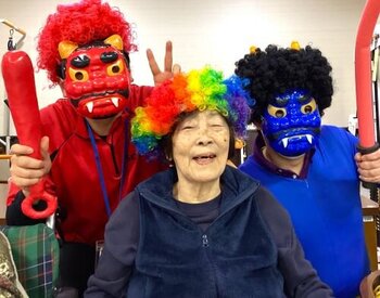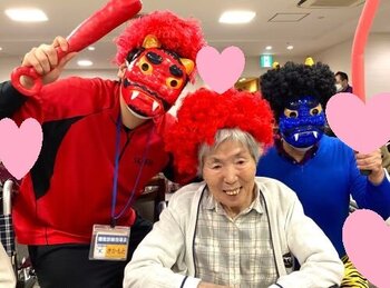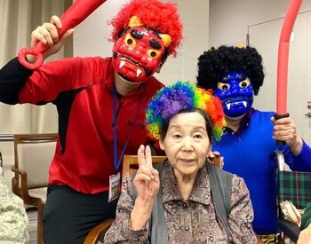 ※ 安全に配慮して、入居者様には目隠しではなく目を閉じて貰ったり職員が目隠しをして参加していただきました。