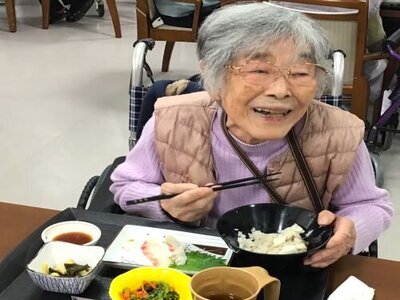 「おいしいね ♪」と、皆さま輝かんばかりの笑顔を職員に