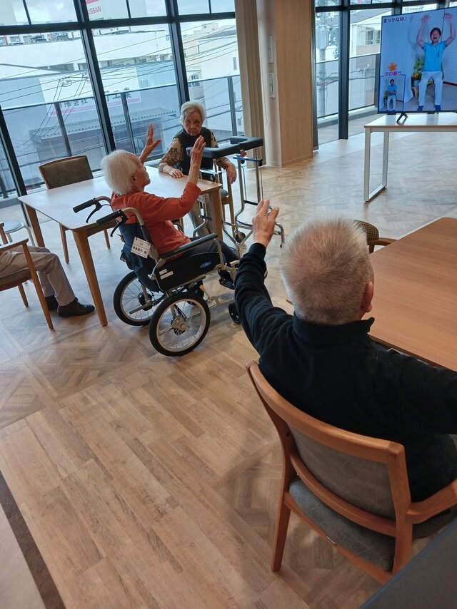 「今日も体操頑張るで~」「分かってはいるんやけど同じように動かすの難しいわぁ」「また、やってな~」など積極的に体操に取り組む様子がみられていましたよ。