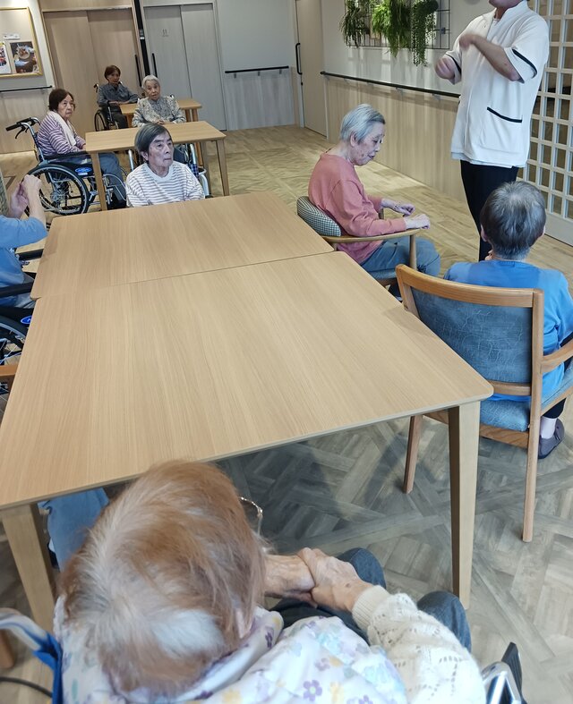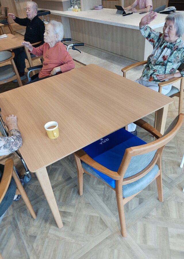 フロアでの日常の様子ですが、健康体操実施時の様子をご紹介させていただきます。