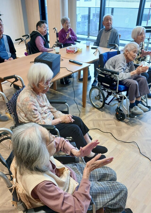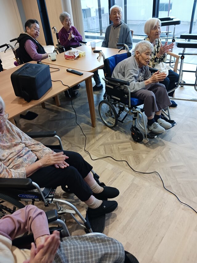「今日は何の曲やるんかなぁ」「この曲知ってるよ~」「みんな上手やわ~~」と手拍子・拍手喝采の大盛り上がりの様子でした。
