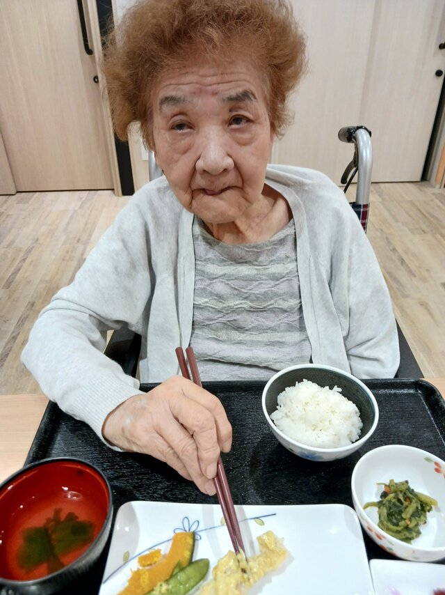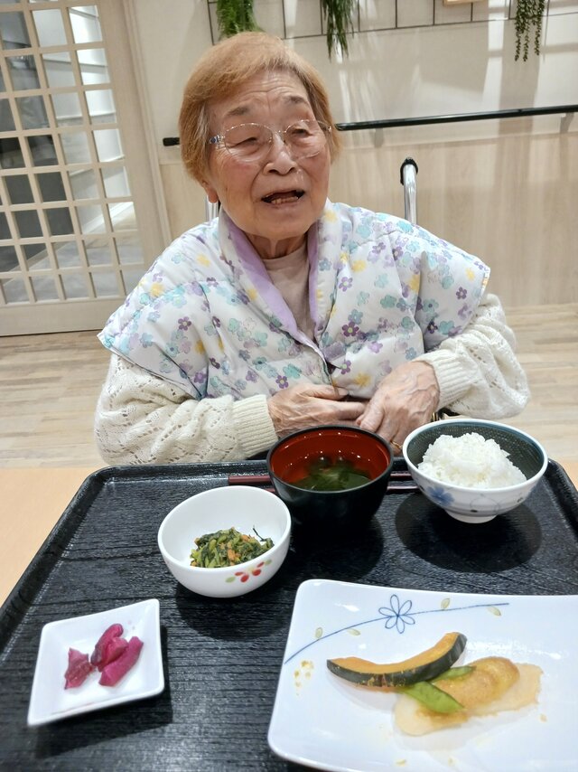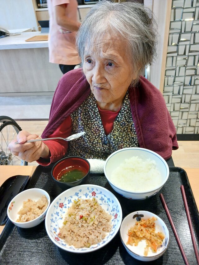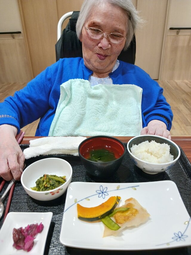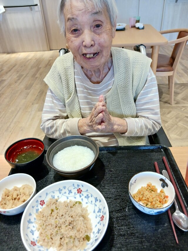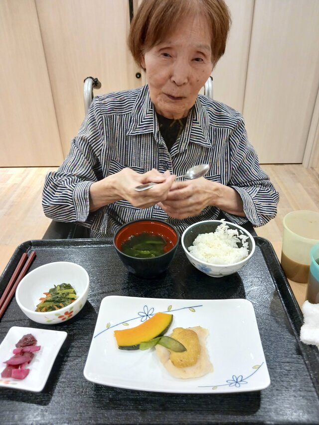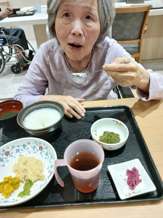 「今日のメニューは中華やね~、シュウマイもあるし」「チャプチェってなんやの?どうやってつくるんやろね」「美味しくいただいていますよ~」目の前に届けられたメニューを確認して、ひと品ひと品をしっかりと召し上がっておられましたよ。