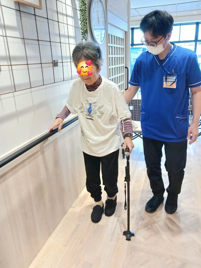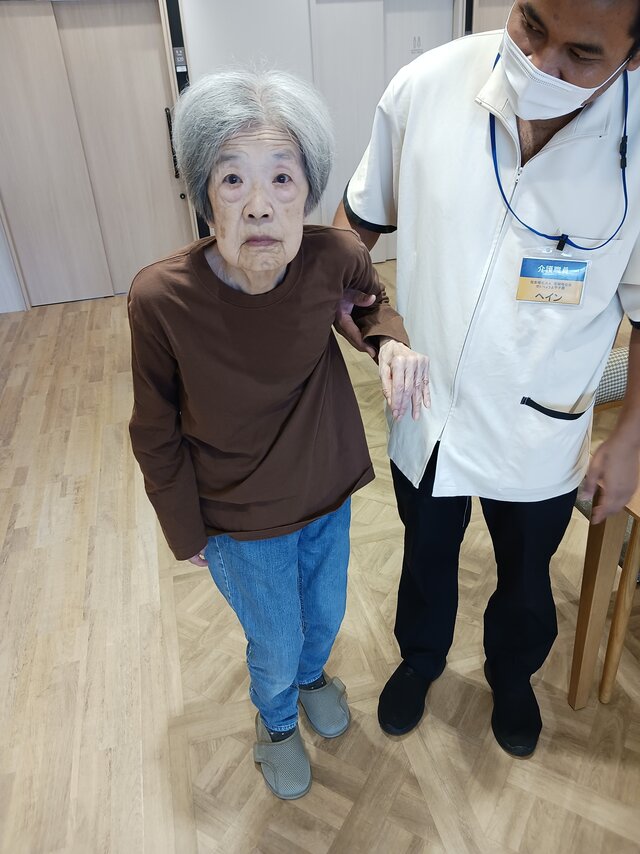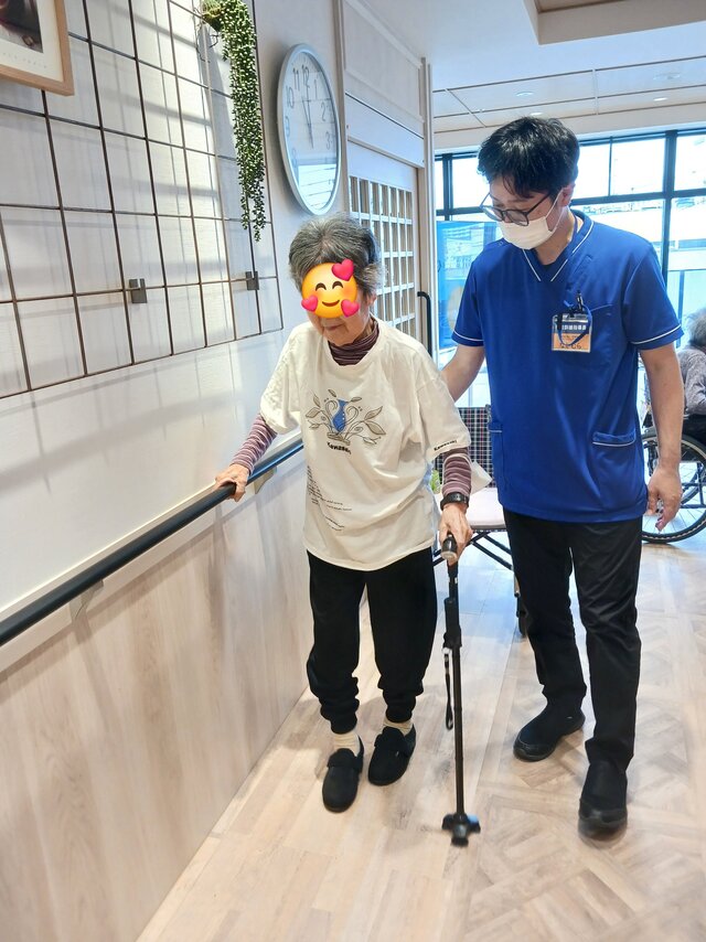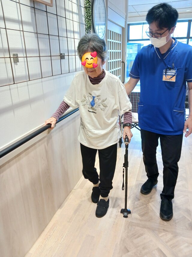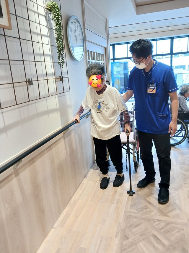 機能訓練といたしまして、しっかり【立つ】できるだけ【歩く】をテーマにどうすればしっかり立てるか・どうすれば歩けるかを機能訓練指導員だけではなく、介護スタッフも一緒に考えながら取り組んでおります。