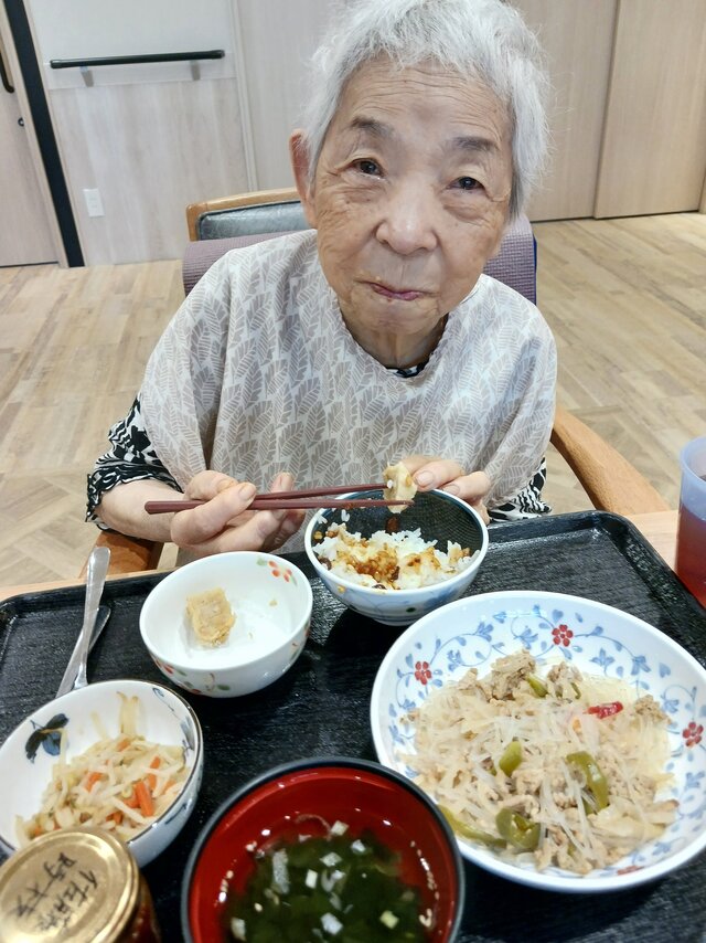 「今日のお昼ご飯はチャプチェやで、ちゃんとメニューを確認してたから知ってるよ」「温かいうちに、あんたも一緒に食べよーか~」などなど明るい日差しが差し込む中、和やかな雰囲気の中皆様しっかりと召し上がっておられましたよ。