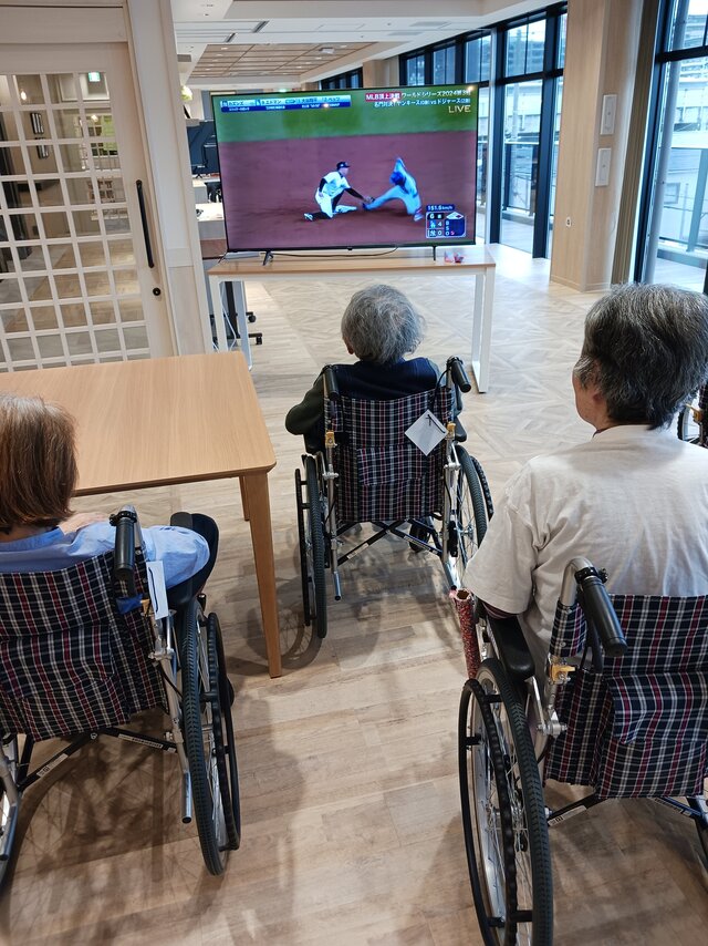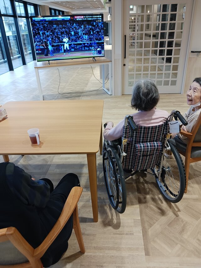 今日はワールドシリーズ第三戦‼テレビの前で野球観戦されてましたよ。