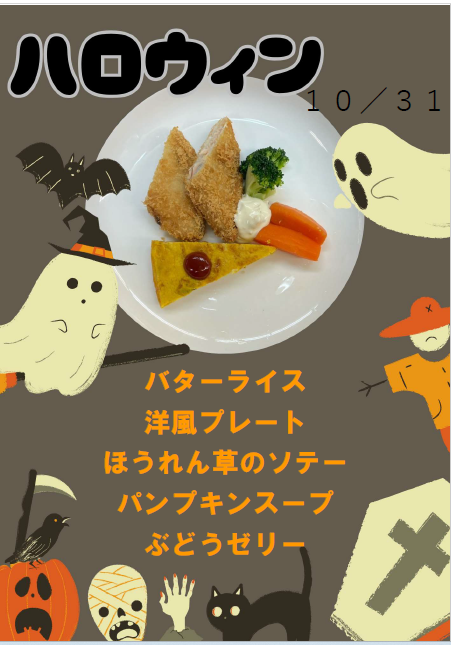 10/31(木)にはハロウィン特別食の提供も予定されていますのでお楽しみにお待ちくださいませ。