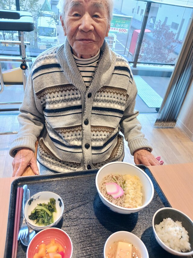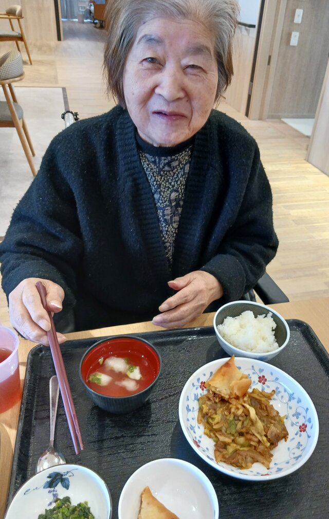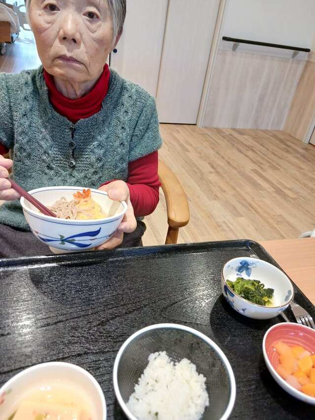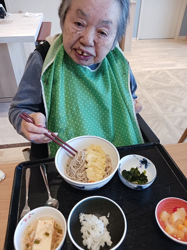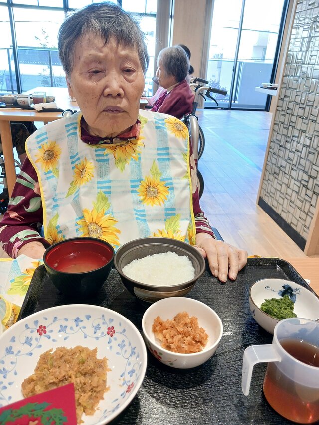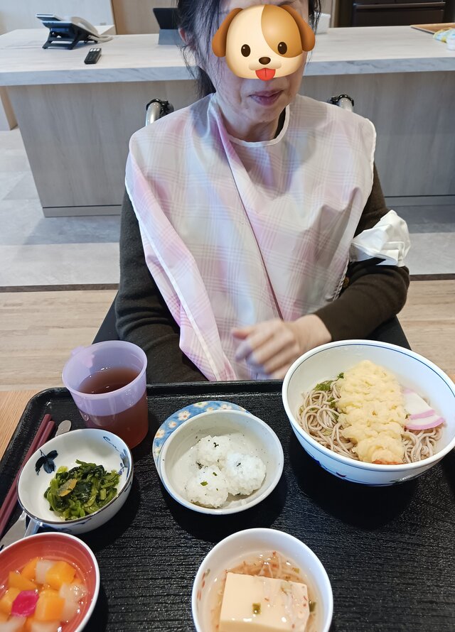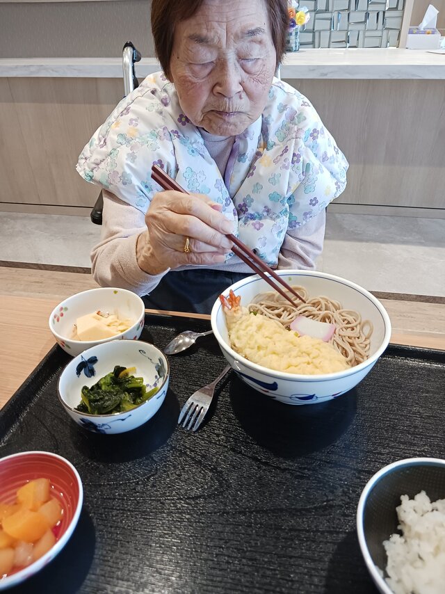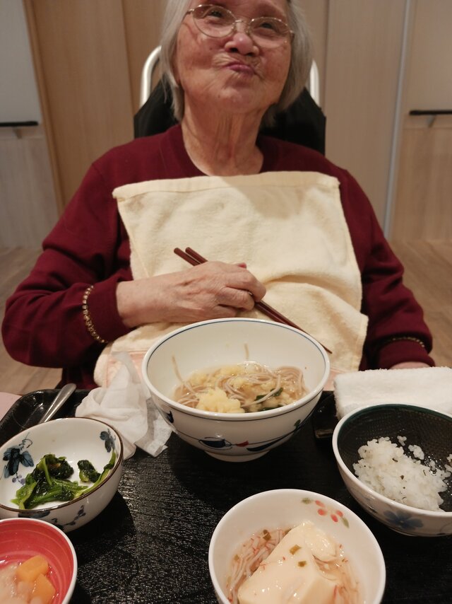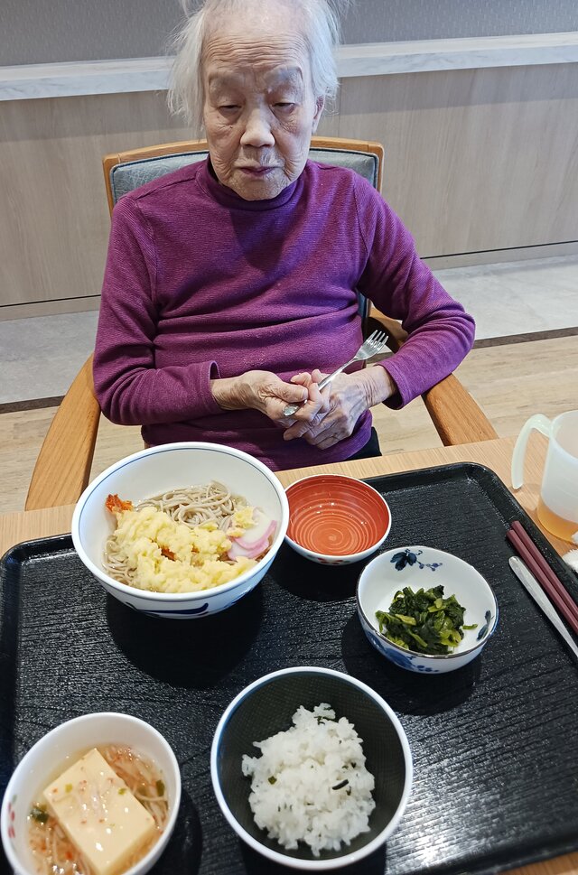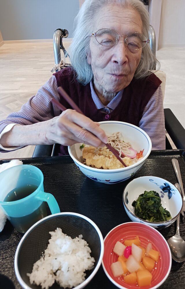 「もう大晦日なんかぁ、一年早いな~」「おっきい天ぷらやなぁ、豪華やないの」「これ全部食べてエエの?嬉しいわぁ~、美味しそうやわ」と、2024年の年の瀬という事にビックリしながらも目の前に並んだご馳走をしっかりと美味しそうに召し上がっておられましたよ。