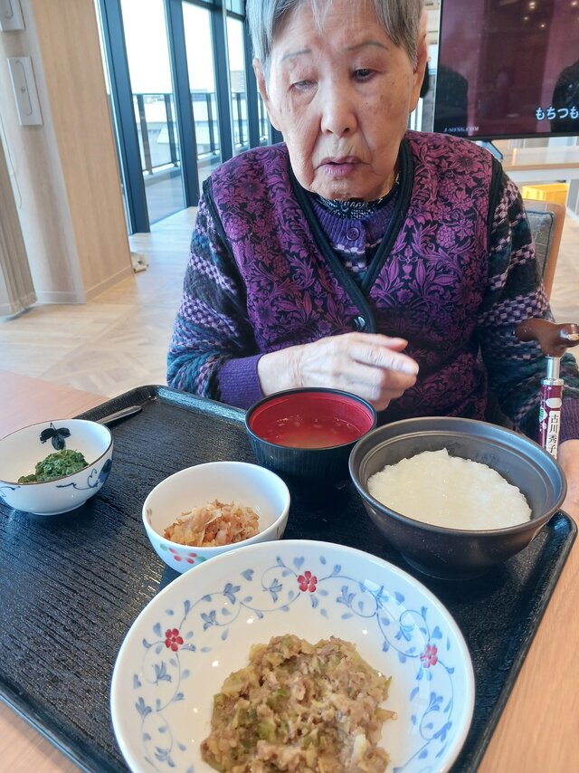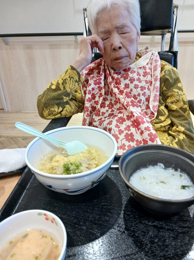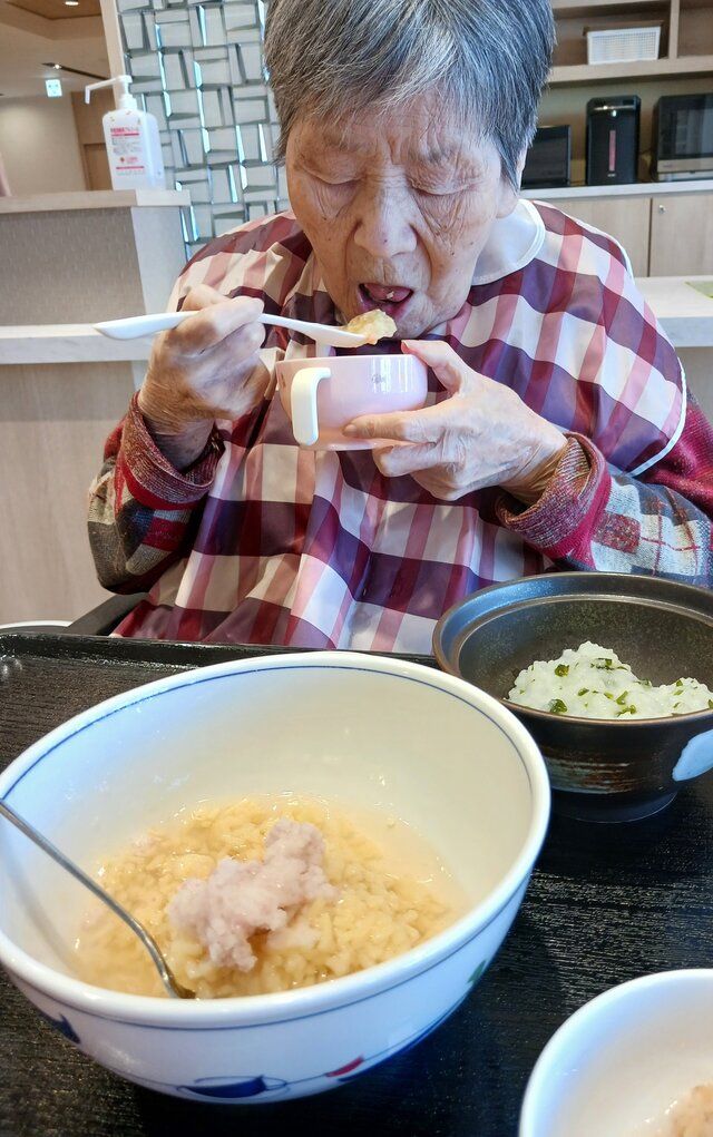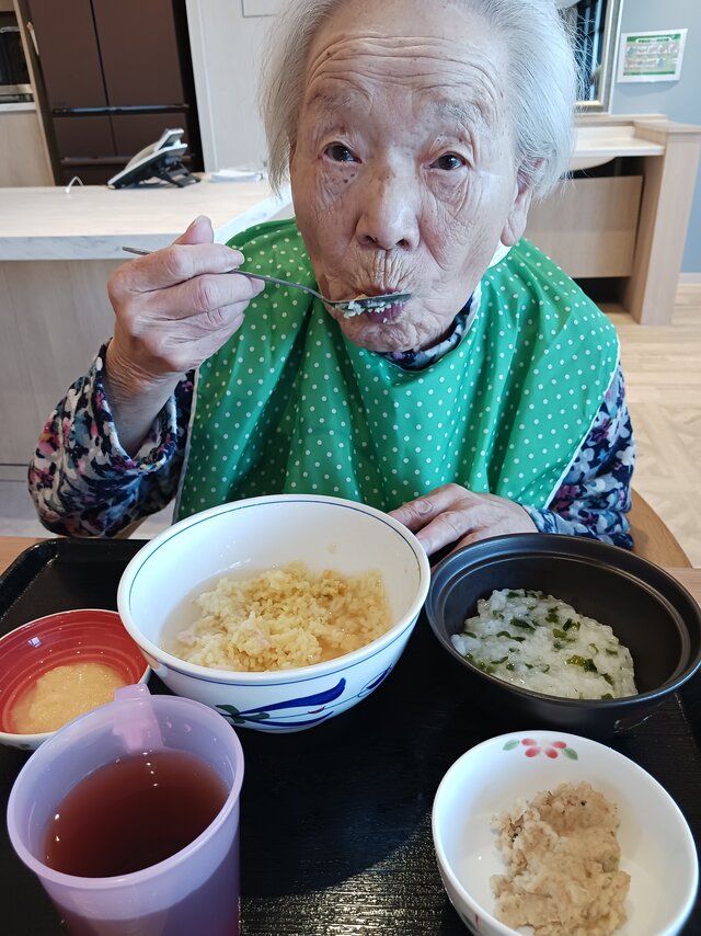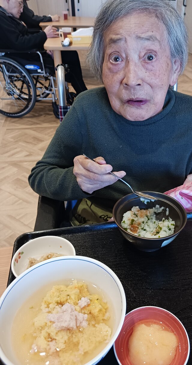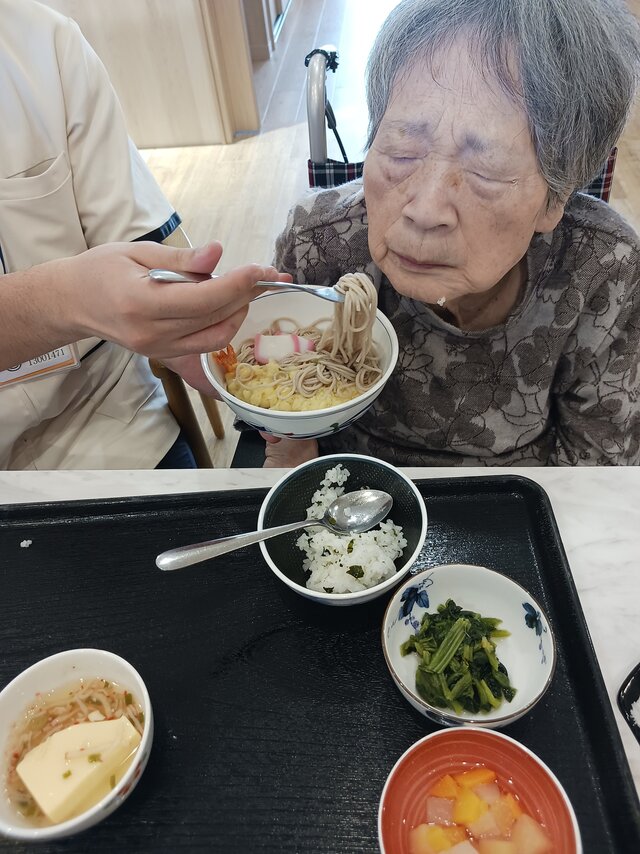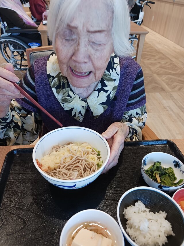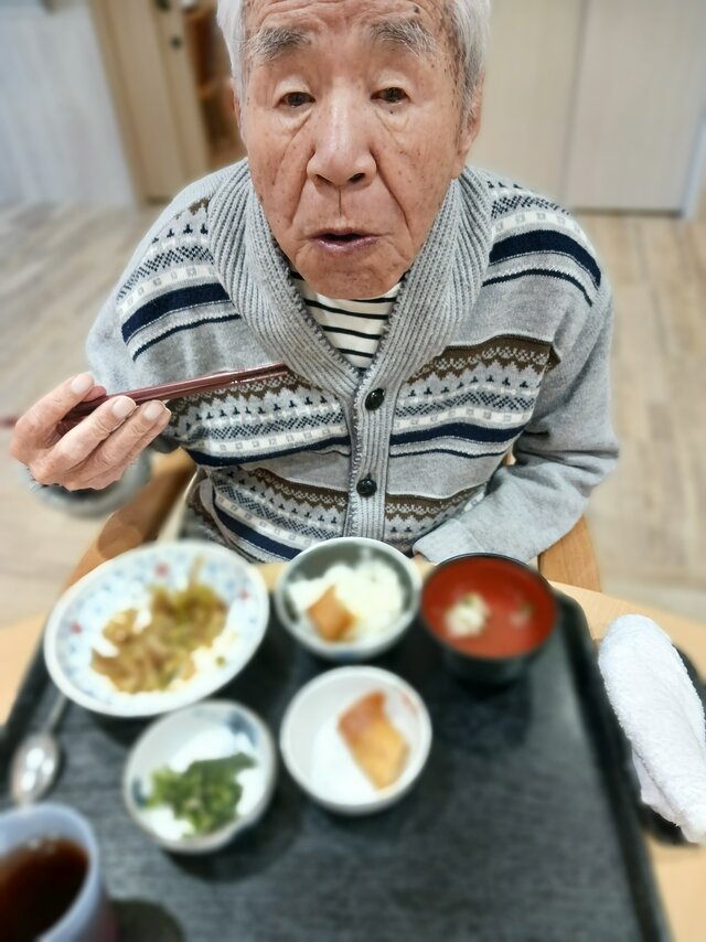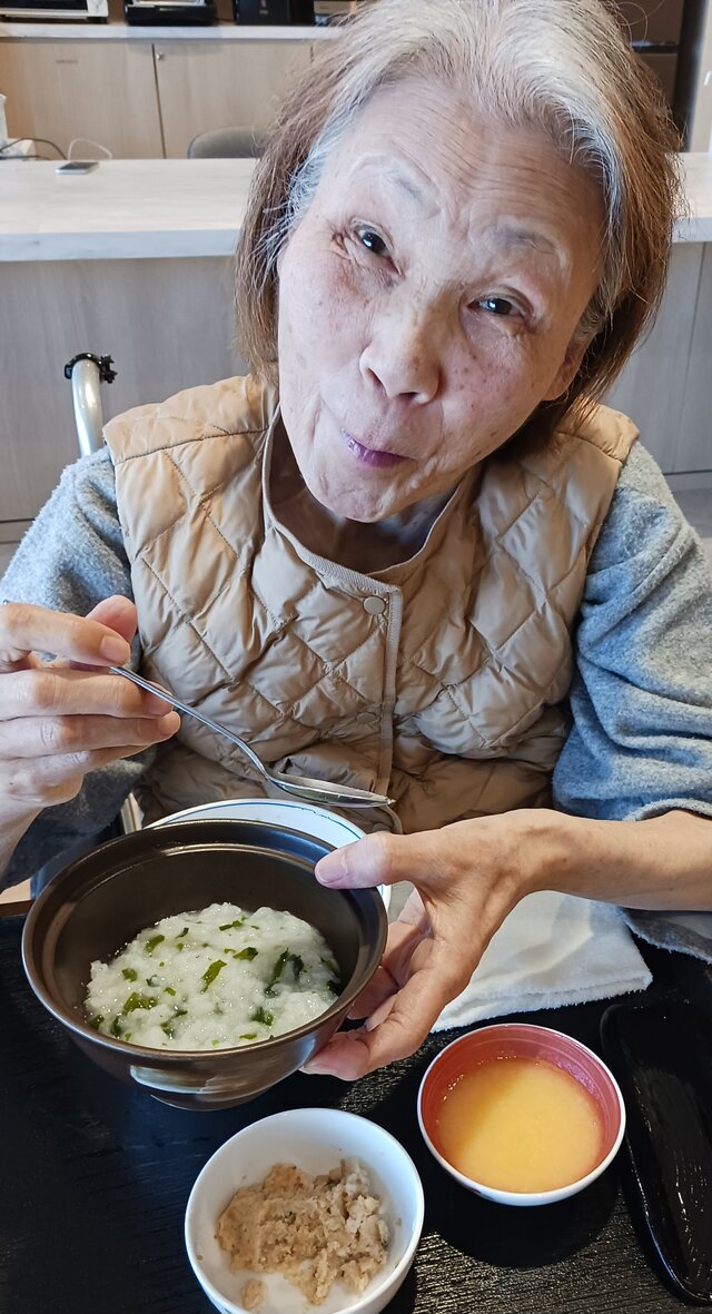 「もう大晦日なんかぁ、一年早いな~」「おっきい天ぷらやなぁ、豪華やないの」「これ全部食べてエエの?嬉しいわぁ~、美味しそうやわ」と、2024年の年の瀬という事にビックリしながらも目の前に並んだご馳走をしっかりと美味しそうに召し上がっておられましたよ。