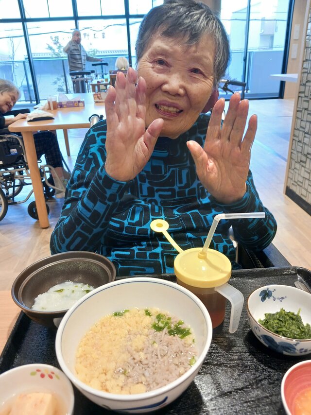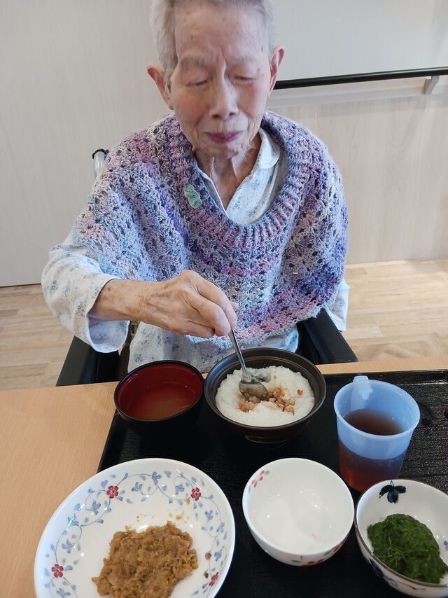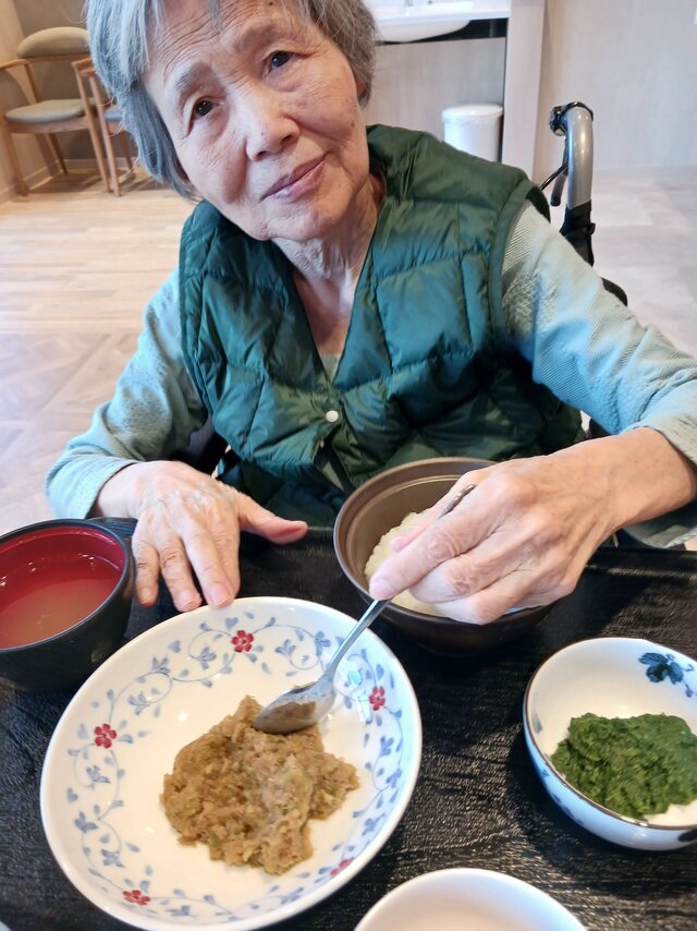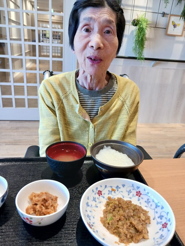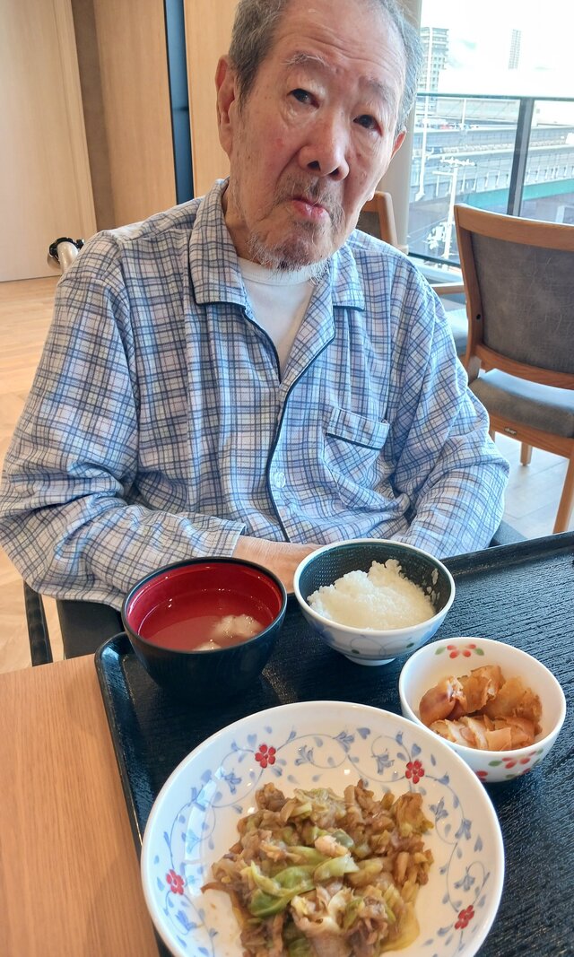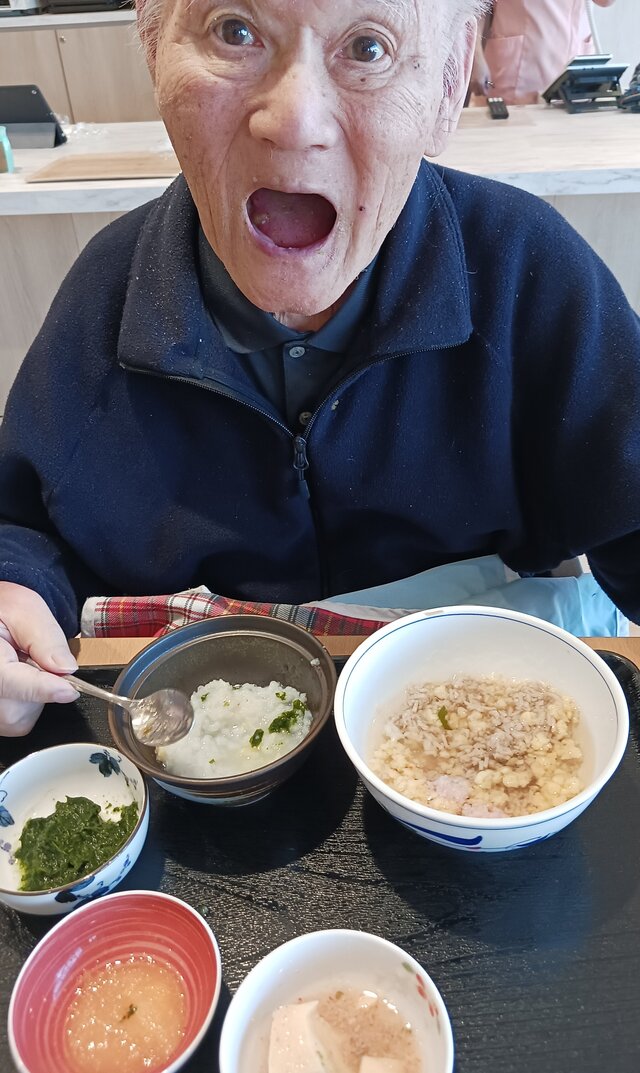 「今日も写真撮ってくれるの?ありがとうね‼」「食欲あるし元気やで~~。食べてエエかぁ(笑)」「出してもらった分はキッチリ食べます。食べな元気出ぇへんしなぁ」と皆さま食べる・飲むについて意欲的に取り組まれていて、一人前の料理をしっかりと召し上がっておられましたよ。