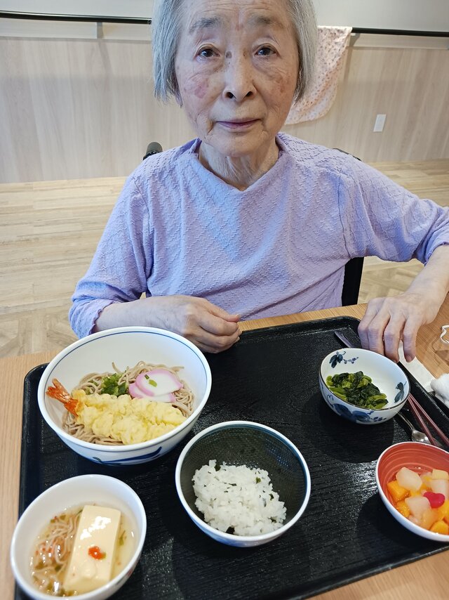 皆さま、お蕎麦に乗っている大きな海老の天麩羅にとても喜ばれていましたよ。