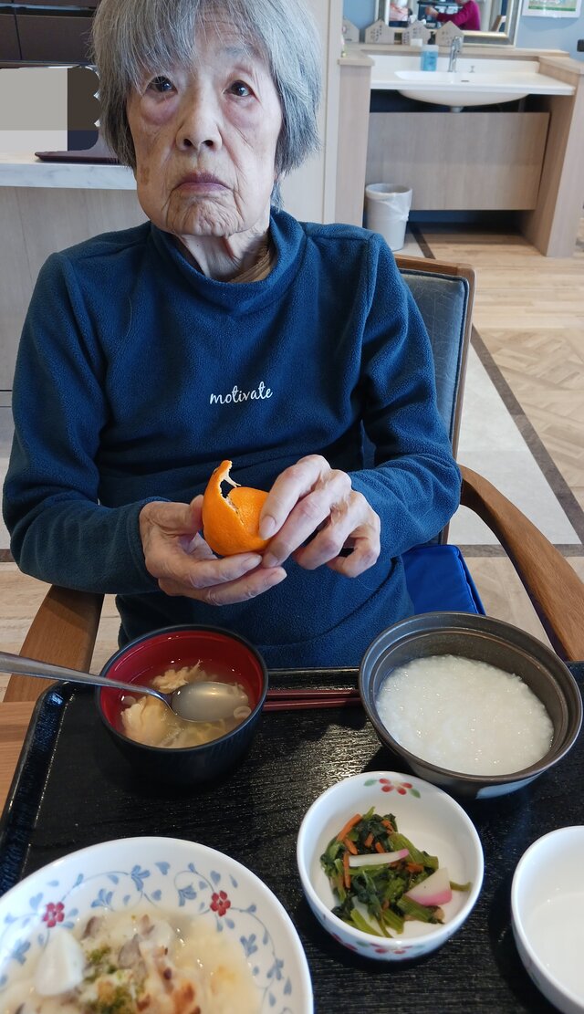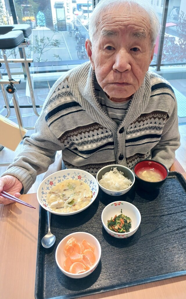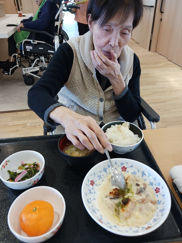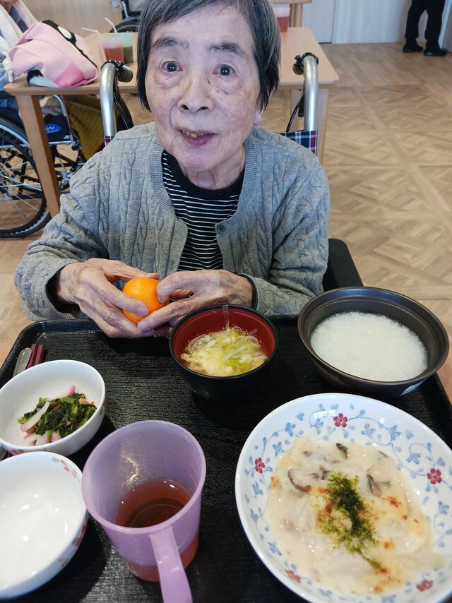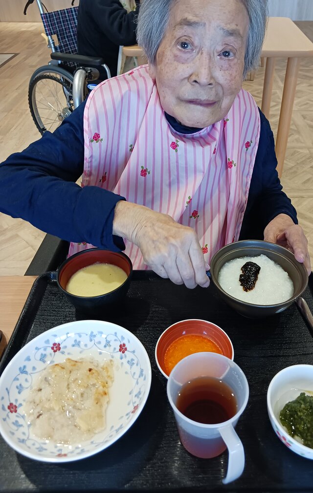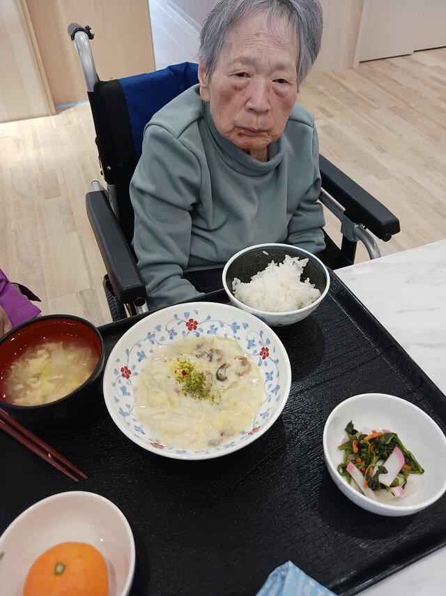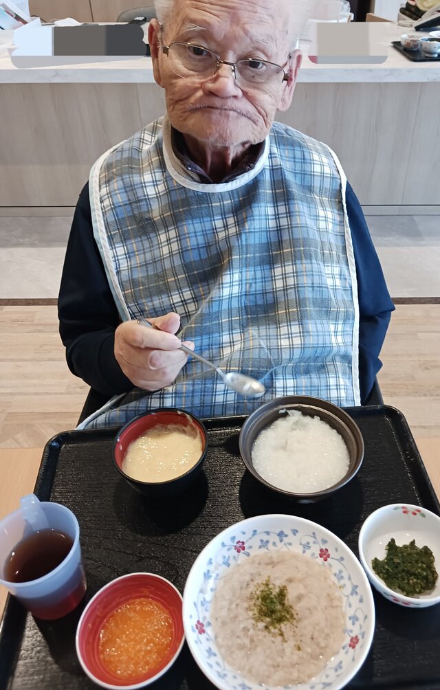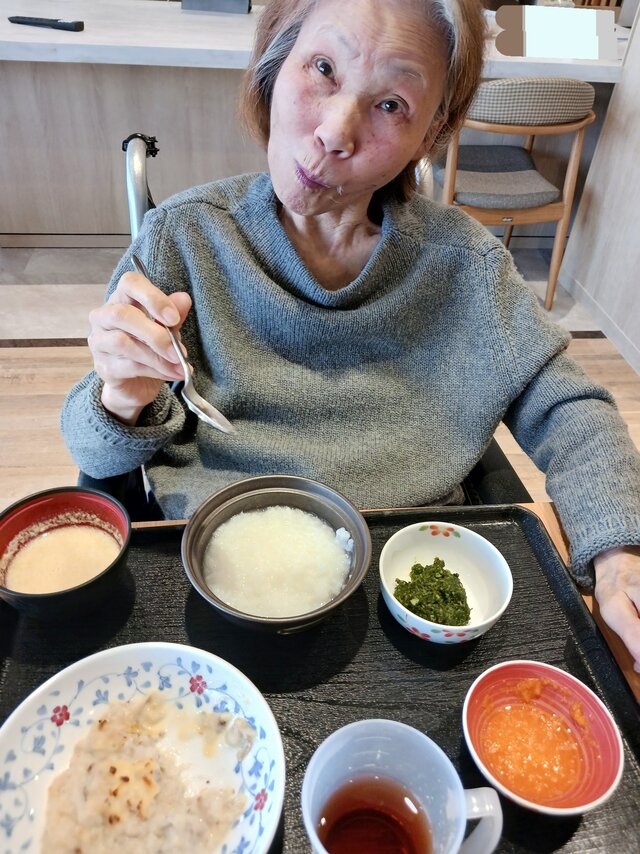 「いつもありがとうね~、いただきま~~す。」と、いつも元気な入居者の皆さま。「ここのご飯は美味しいねんで~~、あんたも食べ~」と、いつも優しい皆さま。「これ見てや~、大きな茶碗やろ!こんなに食べれへんで~」と言いながら、全部きれいに完食される皆さま。