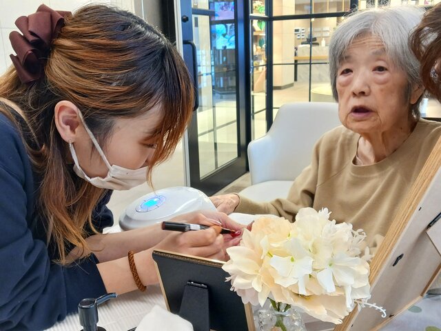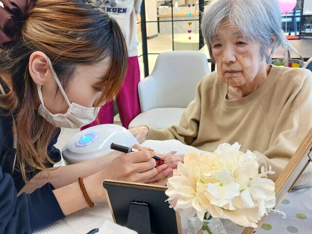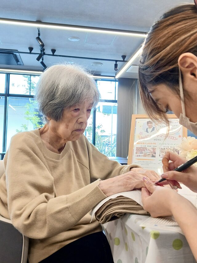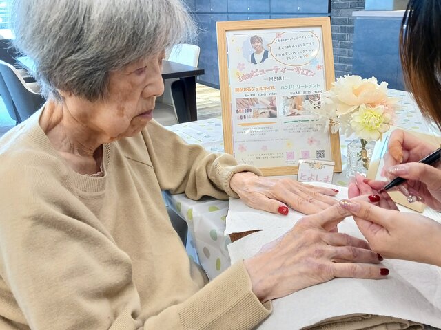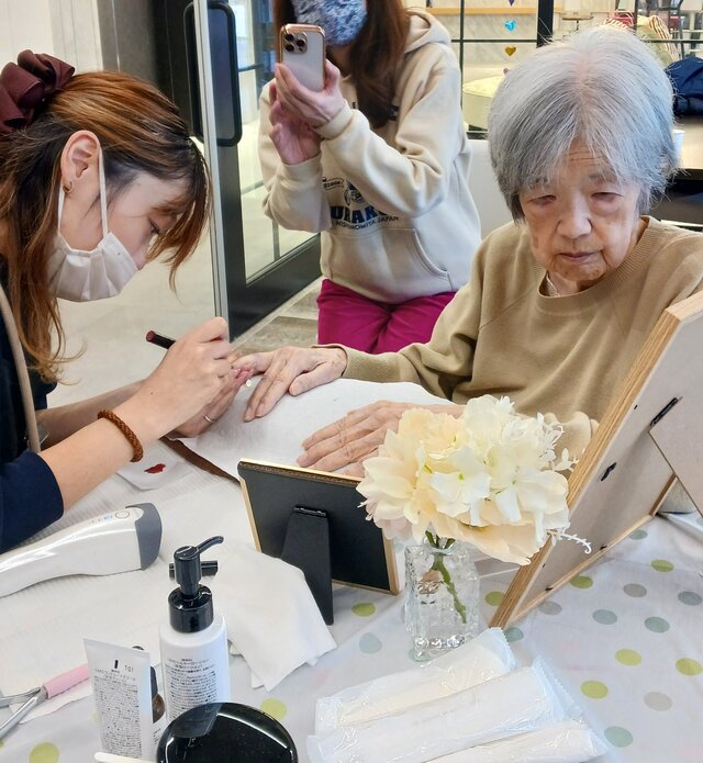 「私も若い時にお店に行ったりデパートに行ったりしたときに、やってもらったりしてたのよ~~」「ここでこんなんしてくれると思ってなかったから嬉しいわぁ~、またやってね!」と、今回の施術は大変好評だったようですね。いつの時代も、綺麗になるのは嬉しいものですね。