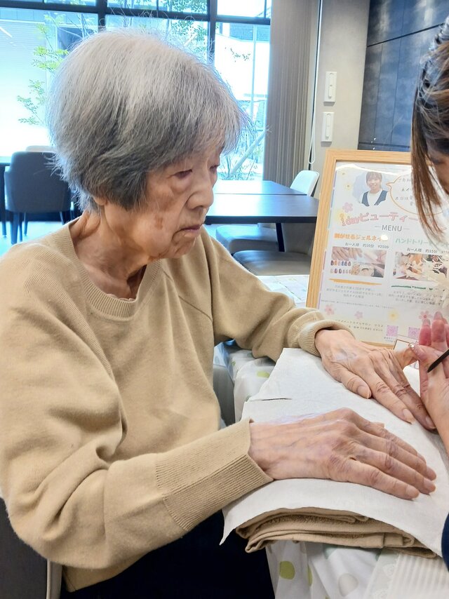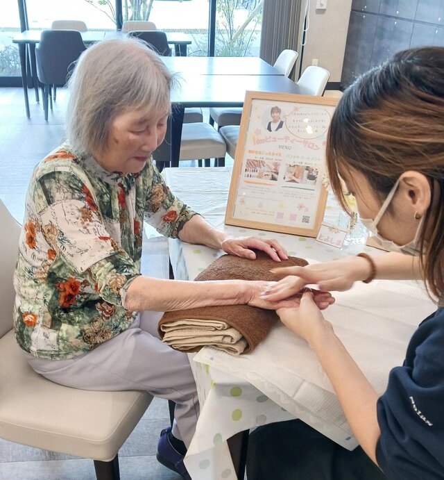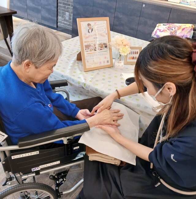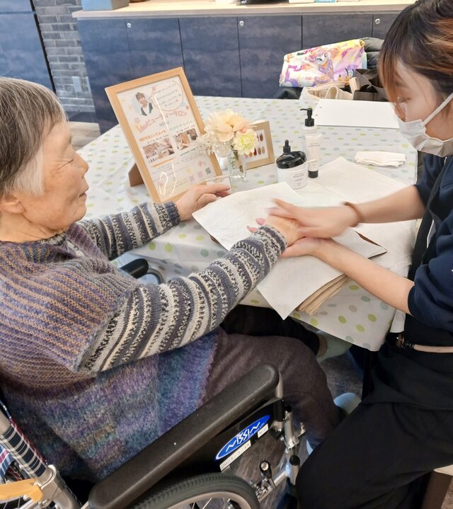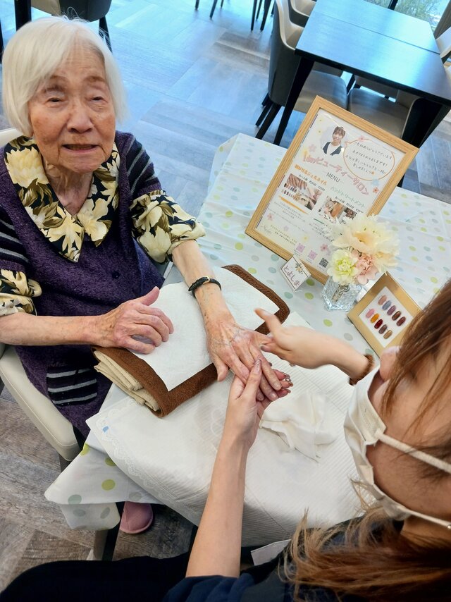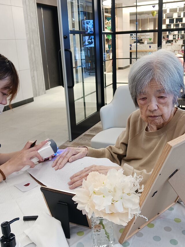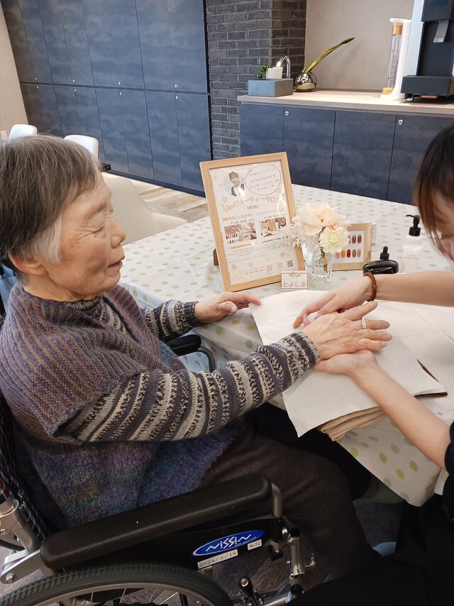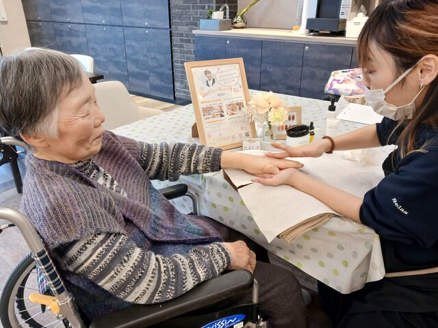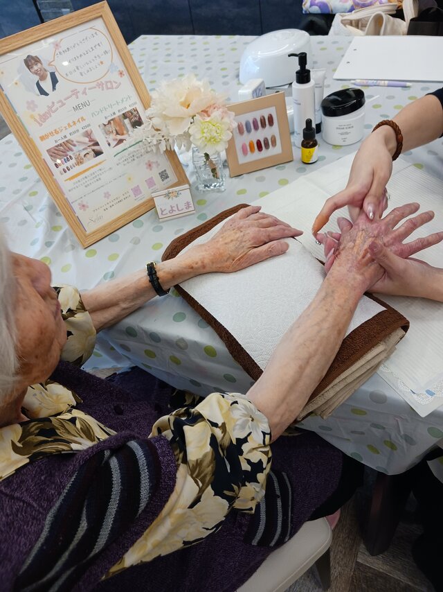 「今日は何かエエことしてくれるって聞いてきたんやけど、何してくれるんかなぁ」「ココは、凄く良い匂いしてるね~~。デパートみたいやわぁ」と普段お過ごしのフロアとは違う雰囲気に大変喜ばれていたみたいですよ。施術の仕上がりにも大満足のご様子でした。