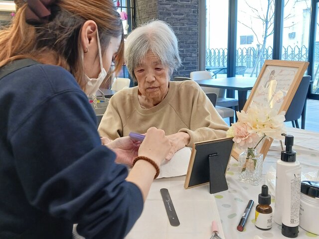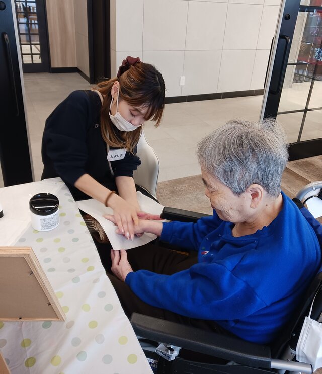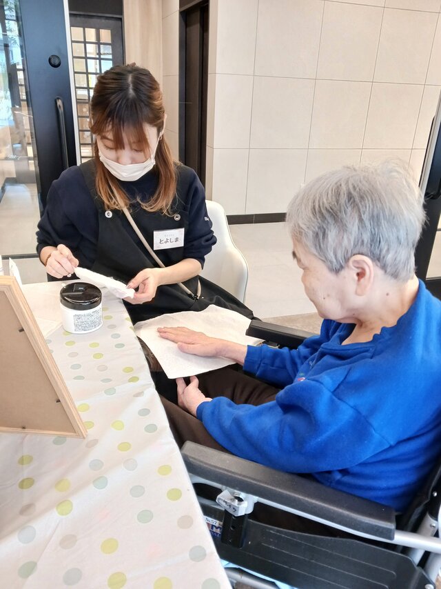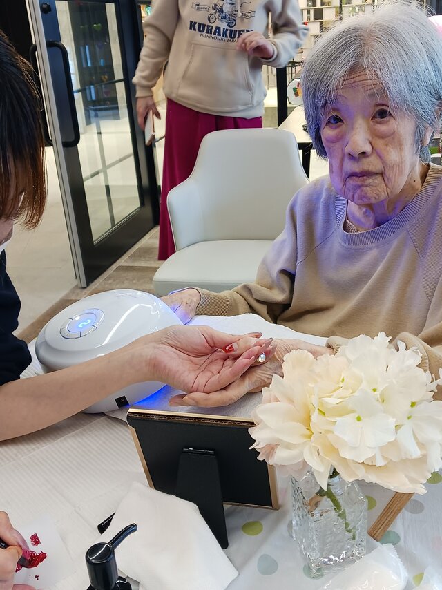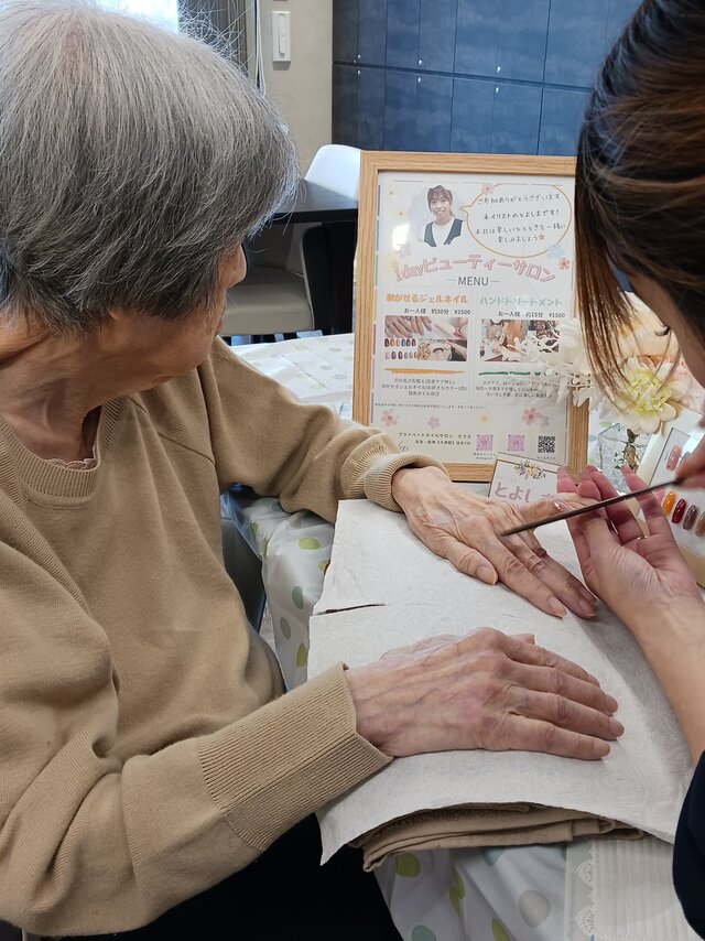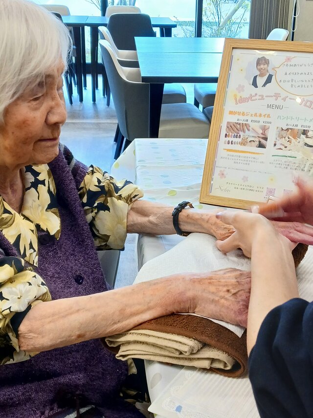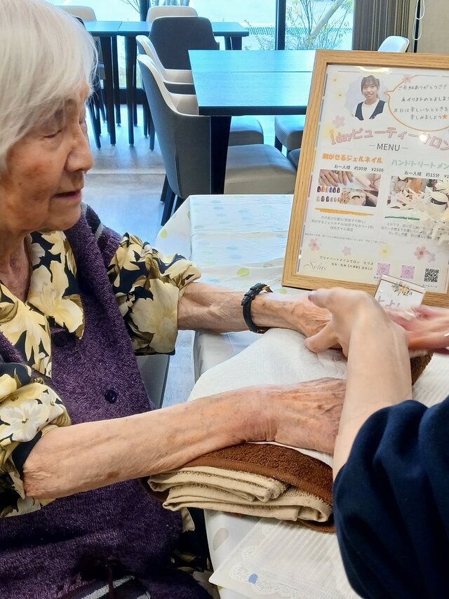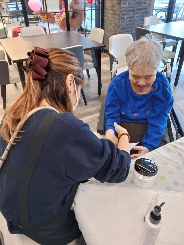 「今日は何かエエことしてくれるって聞いてきたんやけど、何してくれるんかなぁ」「ココは、凄く良い匂いしてるね~~。デパートみたいやわぁ」と普段お過ごしのフロアとは違う雰囲気に大変喜ばれていたみたいですよ。施術の仕上がりにも大満足のご様子でした。