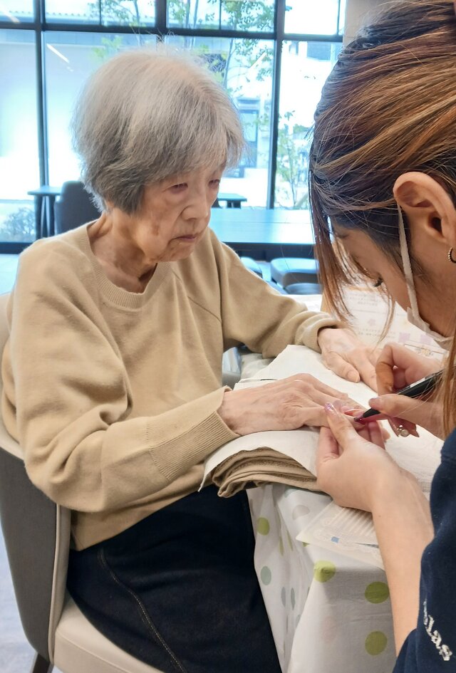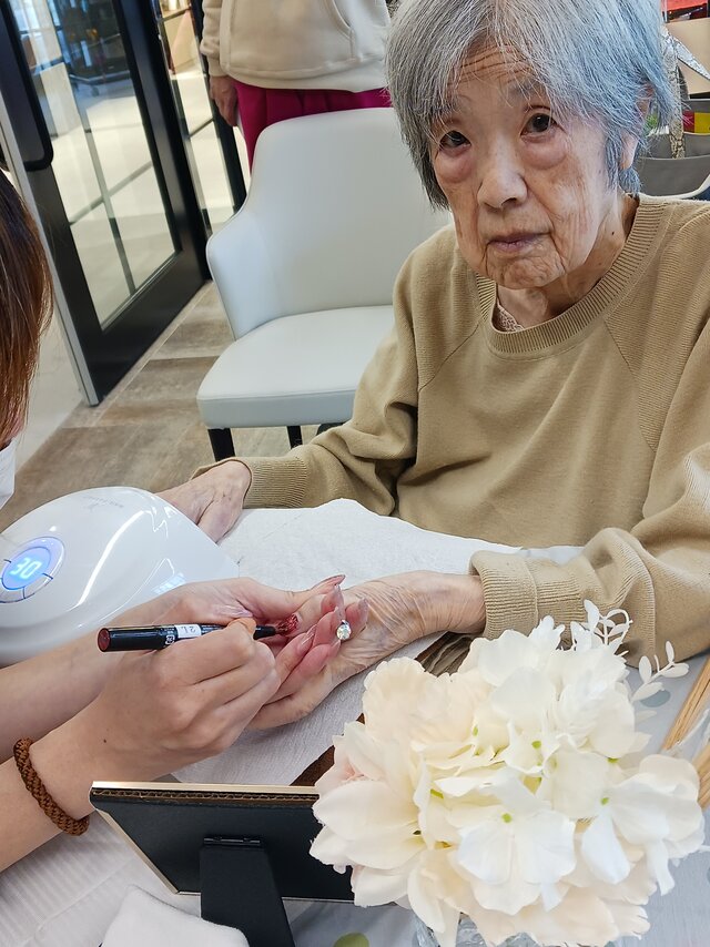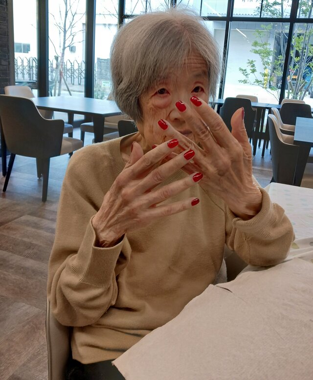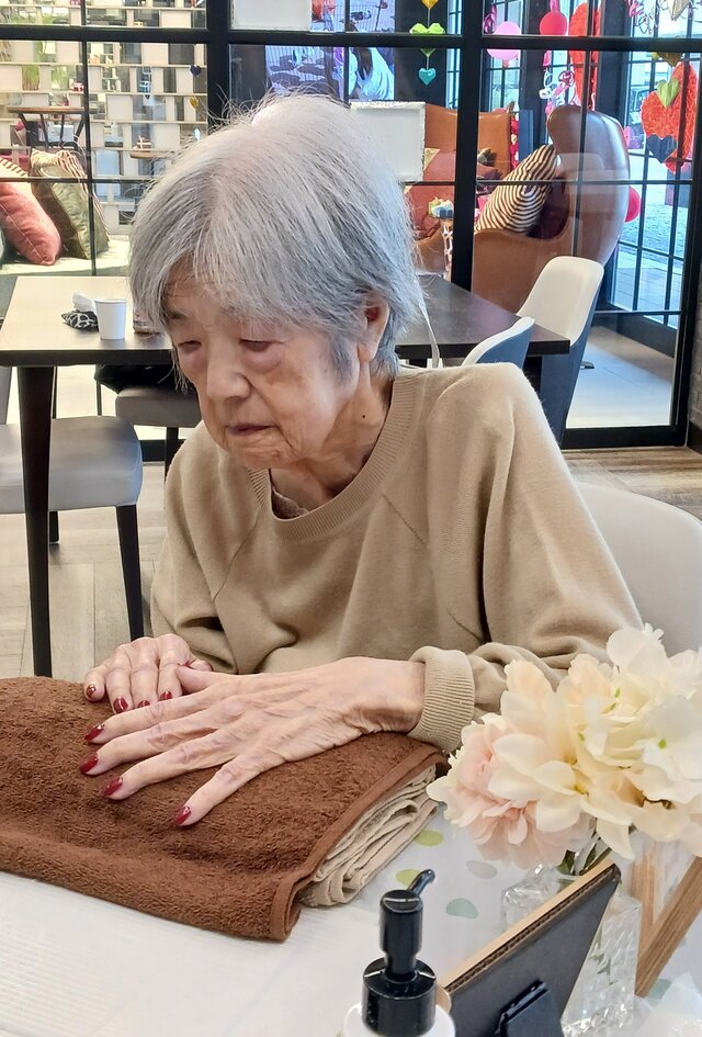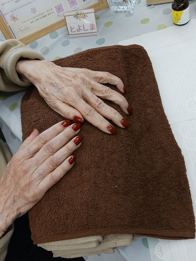 「ここは、スゴイ良い匂いがしてるね~。やってもらえるの嬉しいわぁ」「こんなに、すべすべになるんやね~。また次もお願いしようかしら❓」とネイルサロン仕様の特別な雰囲気の中、ニコニコと楽しそうにお話をしながら施術時間をお過ごしになられていましたよ。