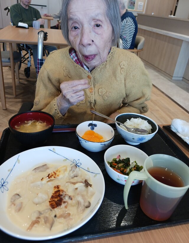 「今日のメニューは何やの?シチューかいな?ちゃうんか、グラタンか!」「良い匂いしてるわぁ、グラタンなんやね」「おいしそうな匂いしてるわぁ。食べてええんか(笑)」と、フロアの中はグラタンの良い匂いで包まれていました。本当に本当に良い匂いで写真を撮ってるコチラは物凄~~く、お腹が空いてつらかったですけど......。