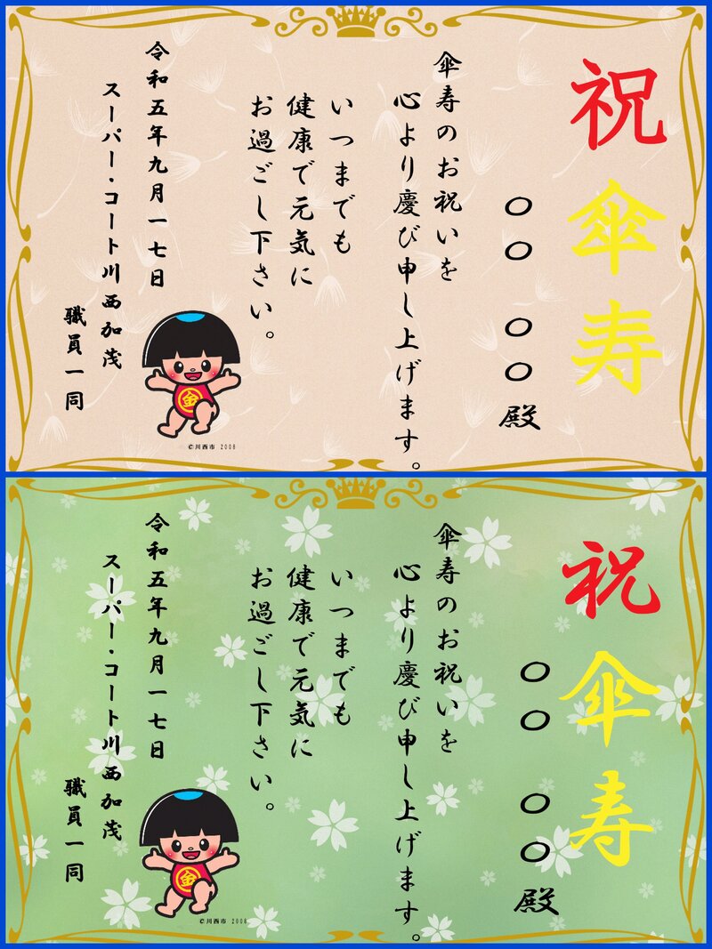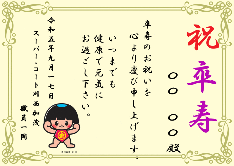 敬老会の賞状も世界に一つしかないSC川西加茂オリジナル賞状を作成★