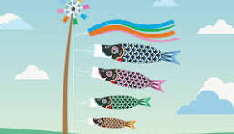 ・唄の由来ですが、江戸時代に男の子が「健康に育ち立身出世するように」という願いから、武士が庭に飾った鯉の形の吹き流しが始まりです。
