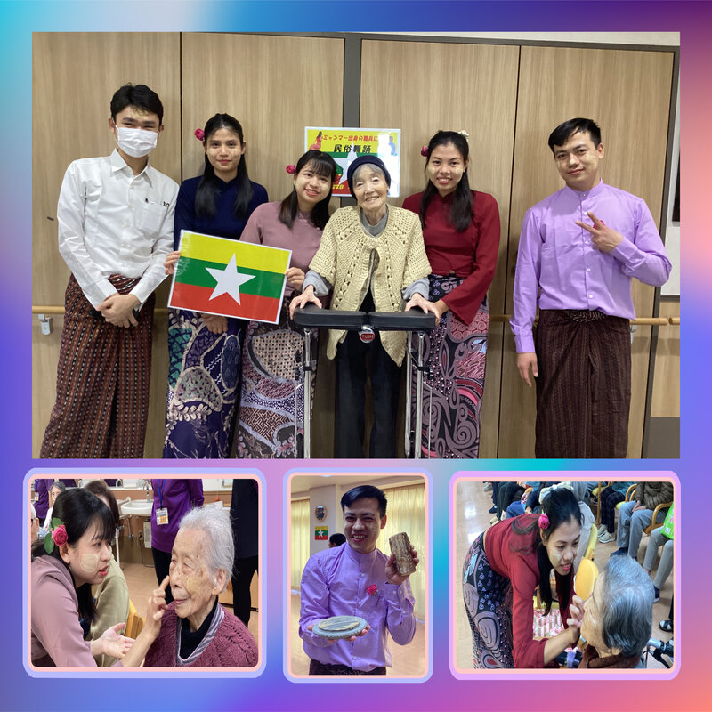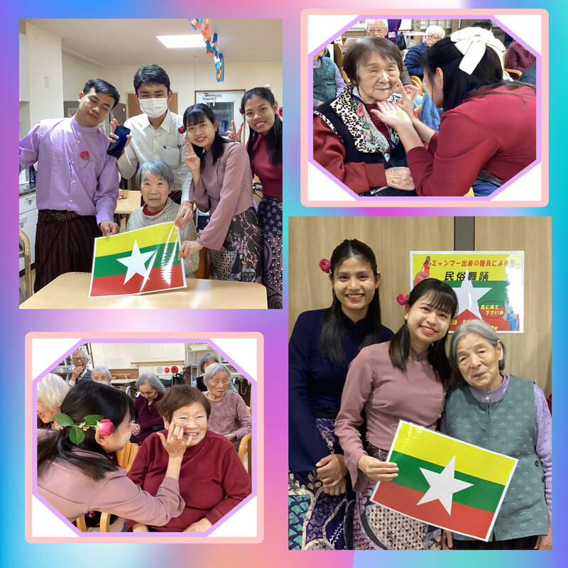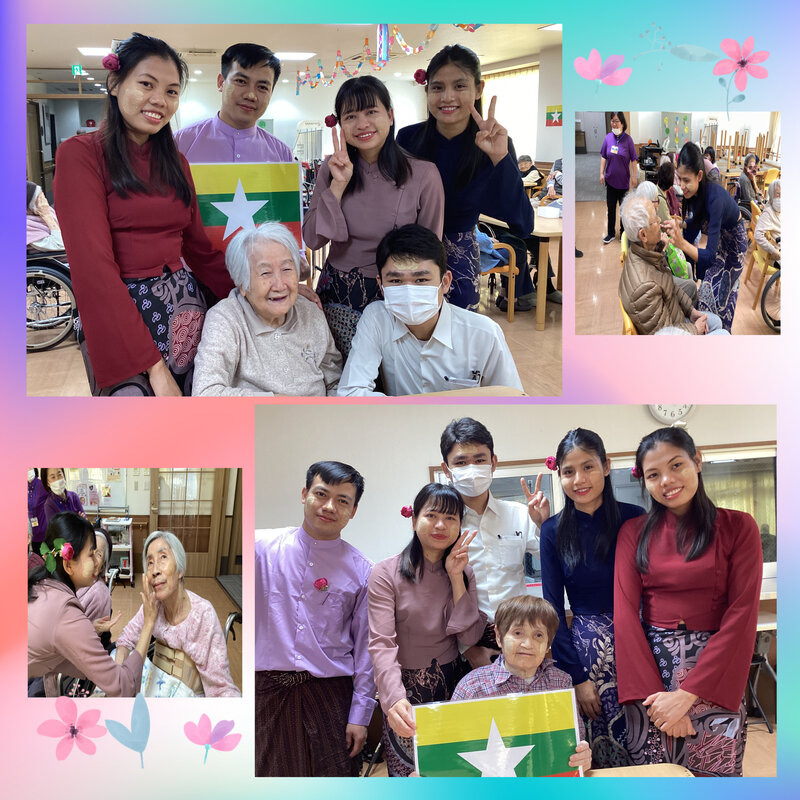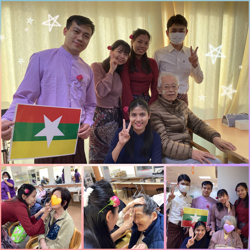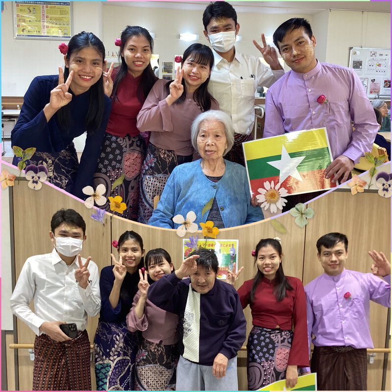 ミャンマー職員とご入居者様で「ハイ!ポーズ!!」