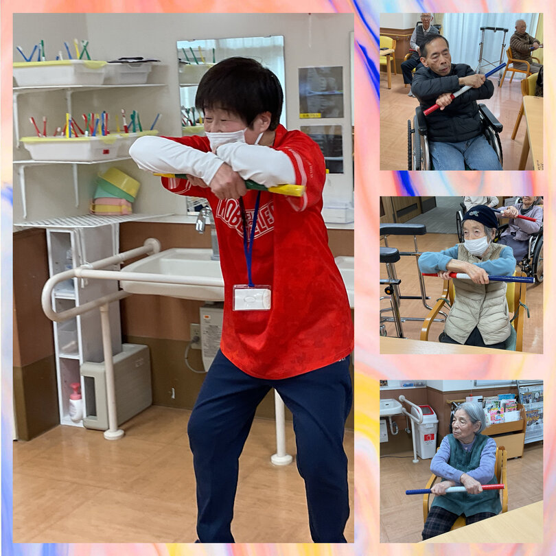 今回は「棒体操」と「棒を使った風船バレー」を行いました(^▽^)/