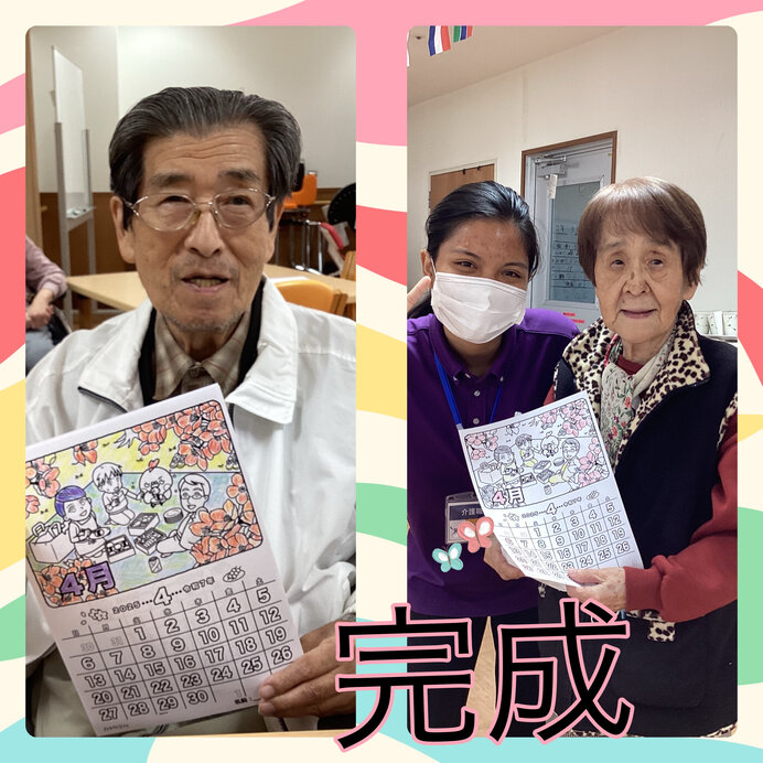皆様、カレンダー上の絵に色塗りをされています!