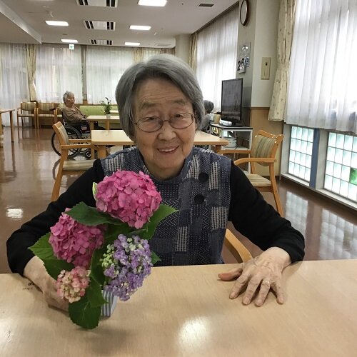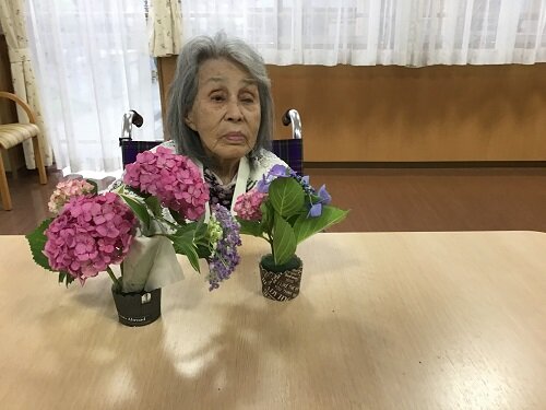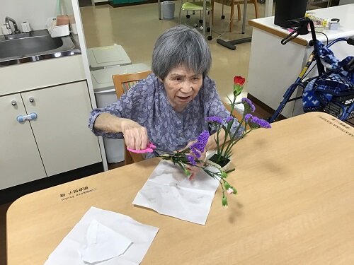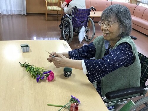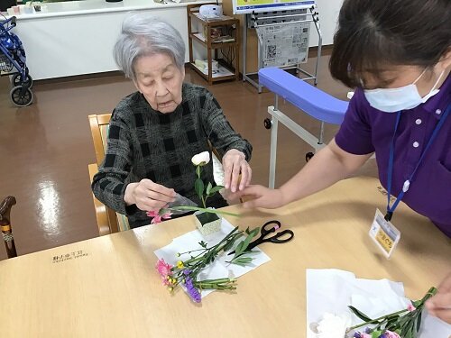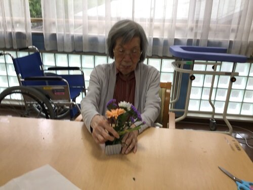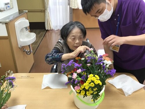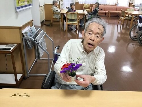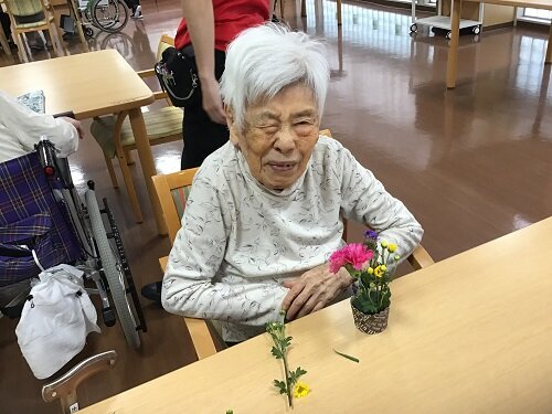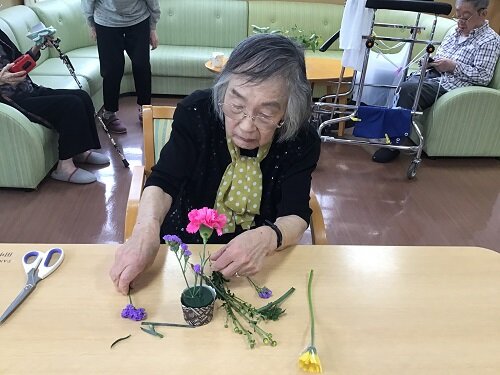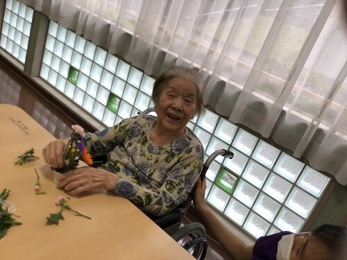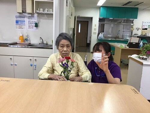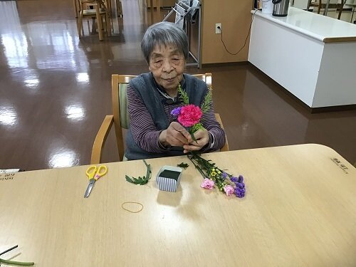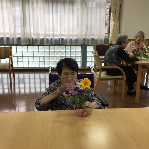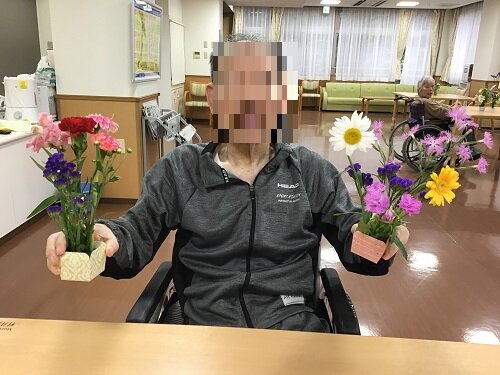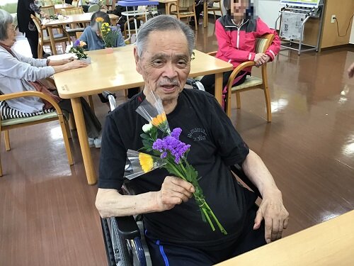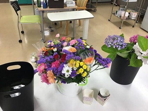 居室に持って帰られた方、食堂に飾った方等様々でしたが、施設の中は暫くの間お花で溢れていました。
