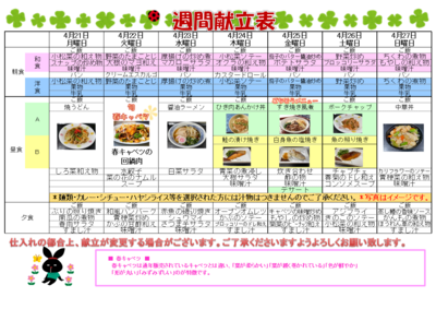 来週の献立を掲載します!