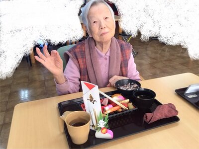 ご入居者の皆様をお祝いして、本日は赤飯に天ぷらのメニューになります!