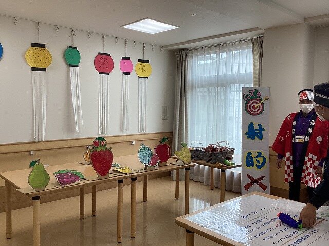 鬼を撃退すべく入居者様には豆の代わりにカラーボールを持って待機していただきます!!