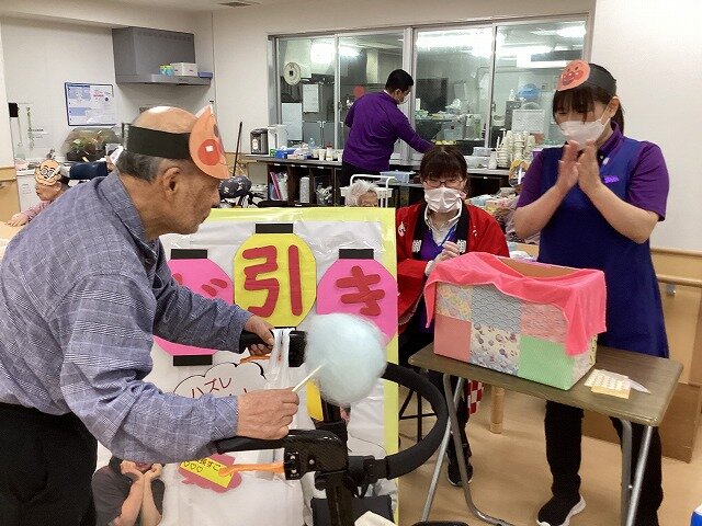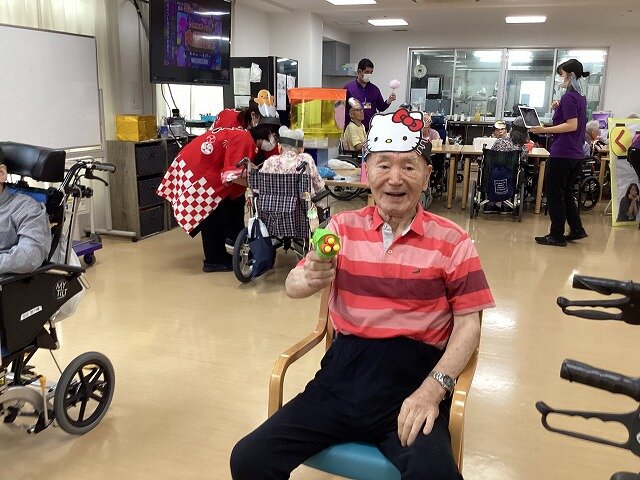 施設長を含む普段接する職員がいつもしない格好をしていますが、皆様さすがに誰が誰かしっかり分かっておられました(笑)