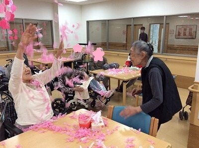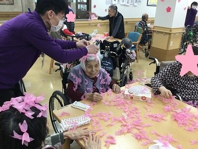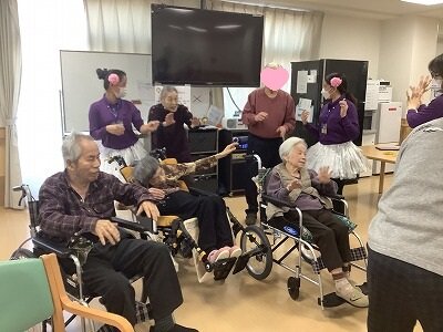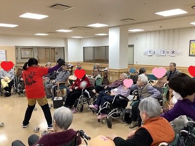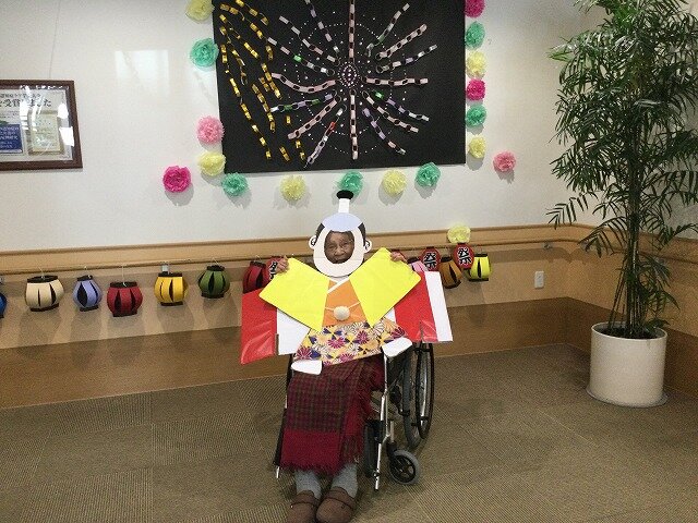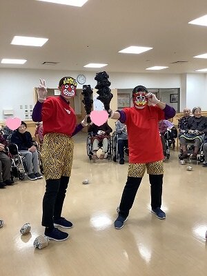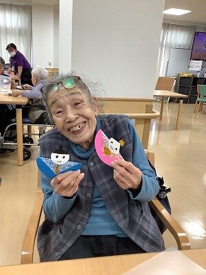 他にも、お面を手作りして入居者様につけて頂いたので写真をよーく見てみて下さい(*^^*)