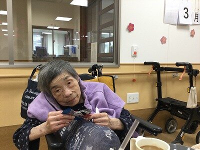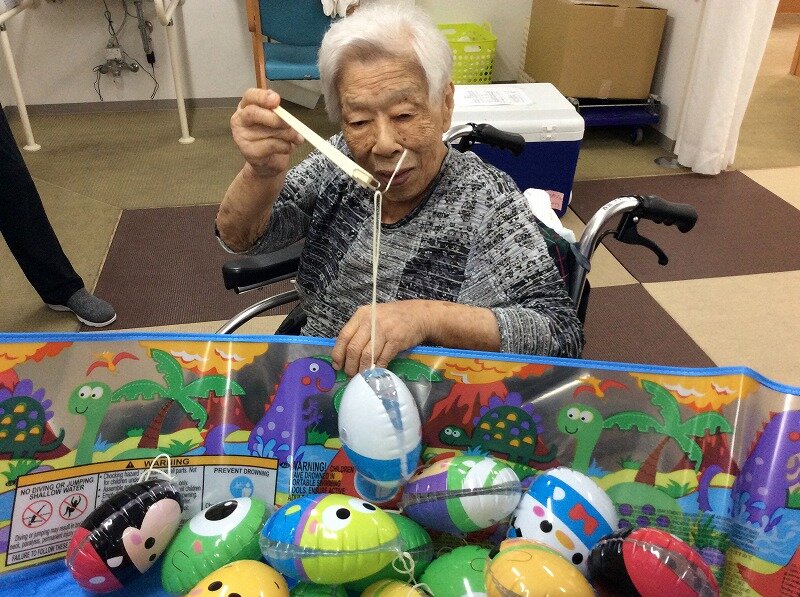 最後の方は一等のバナナクッションを当てられた入居者様です(*^^*)いい笑顔ですね♪