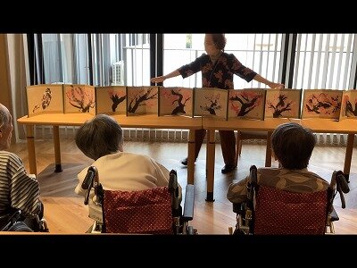 参加者の皆さん、最初は戸惑いを感じている様子でしたが、臨床美術士の優しい声かけや、