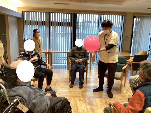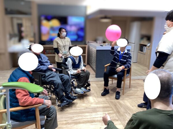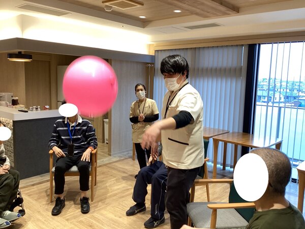 今回は先日に行ったレクリエーションの風船バレーのご様子をご覧いただきます(*'ω'*)