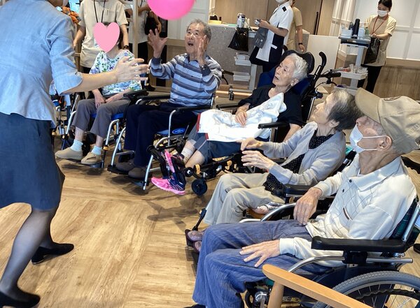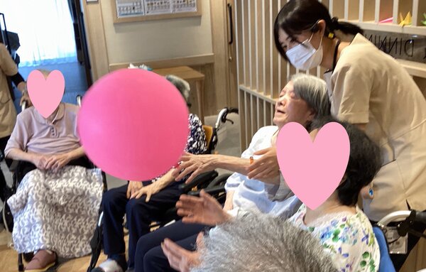 違うご入居者がその方に風船を取りやすいよう渡して下さったり、