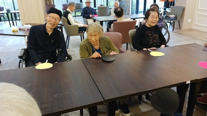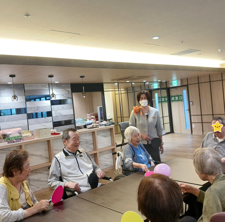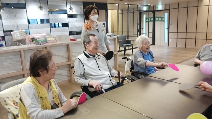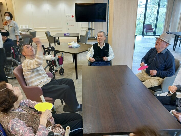 写真は撮れなかったのですが、車椅子の入居者様はネットを使用せず何回ラリーが続けられるかを