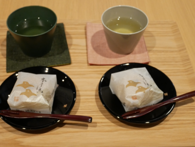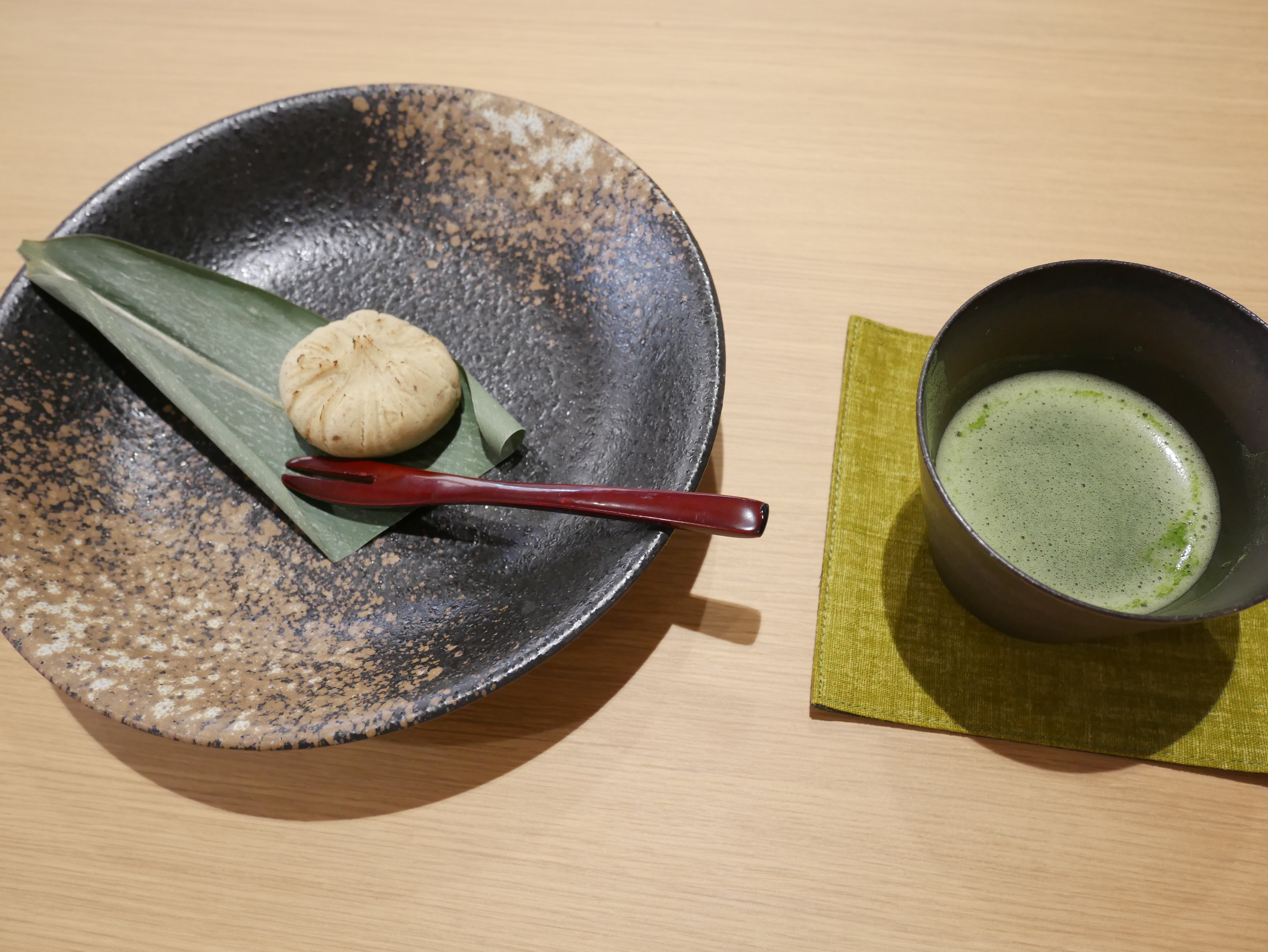 たねやの栗きんとんと入れたてのお抹茶をご用意しました。