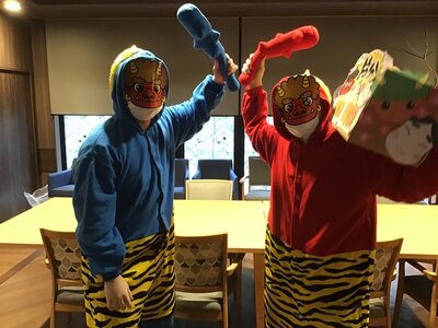 節分とは、「みんなが健康で幸せに過ごせますように」という意味をこめて、悪いものを追い出す日。