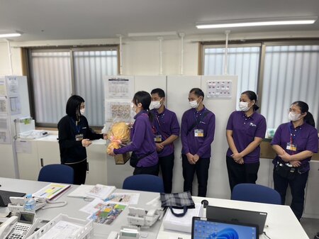 先日、エリエール等を取り扱っておられる【王子製紙】様にご協力いただき、施設職員向けに「おむつの当て方・選び方」研修会を開催しました。当日は、専門職の方に来訪して頂き「正しい選定方法」や「デモ機」を使ってのおむつの当て方等を学びました。参加職員からも「すぐにご入居者の方へ活かせる内容で、とても勉強になりました」といったお声を頂いております。