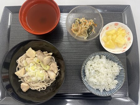 【大人気!夏バテ防止にネギ&豚 蕎麦、パイナップルを添えて】