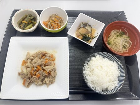 【豚肉の炒め物とブリの煮物、にゅう麺を添えて】➡女性のご入居者から「食べやすい」等、好評でした。